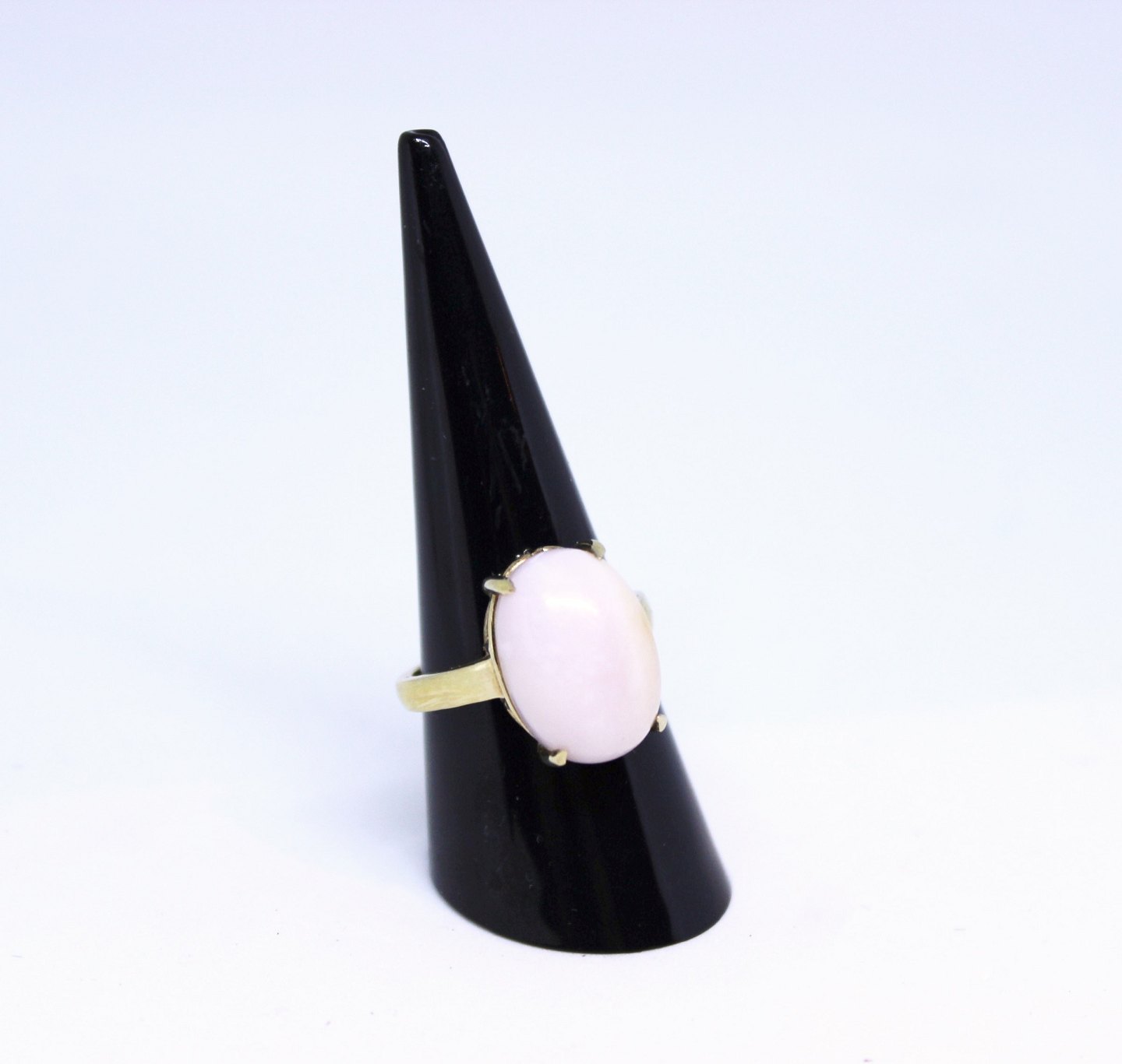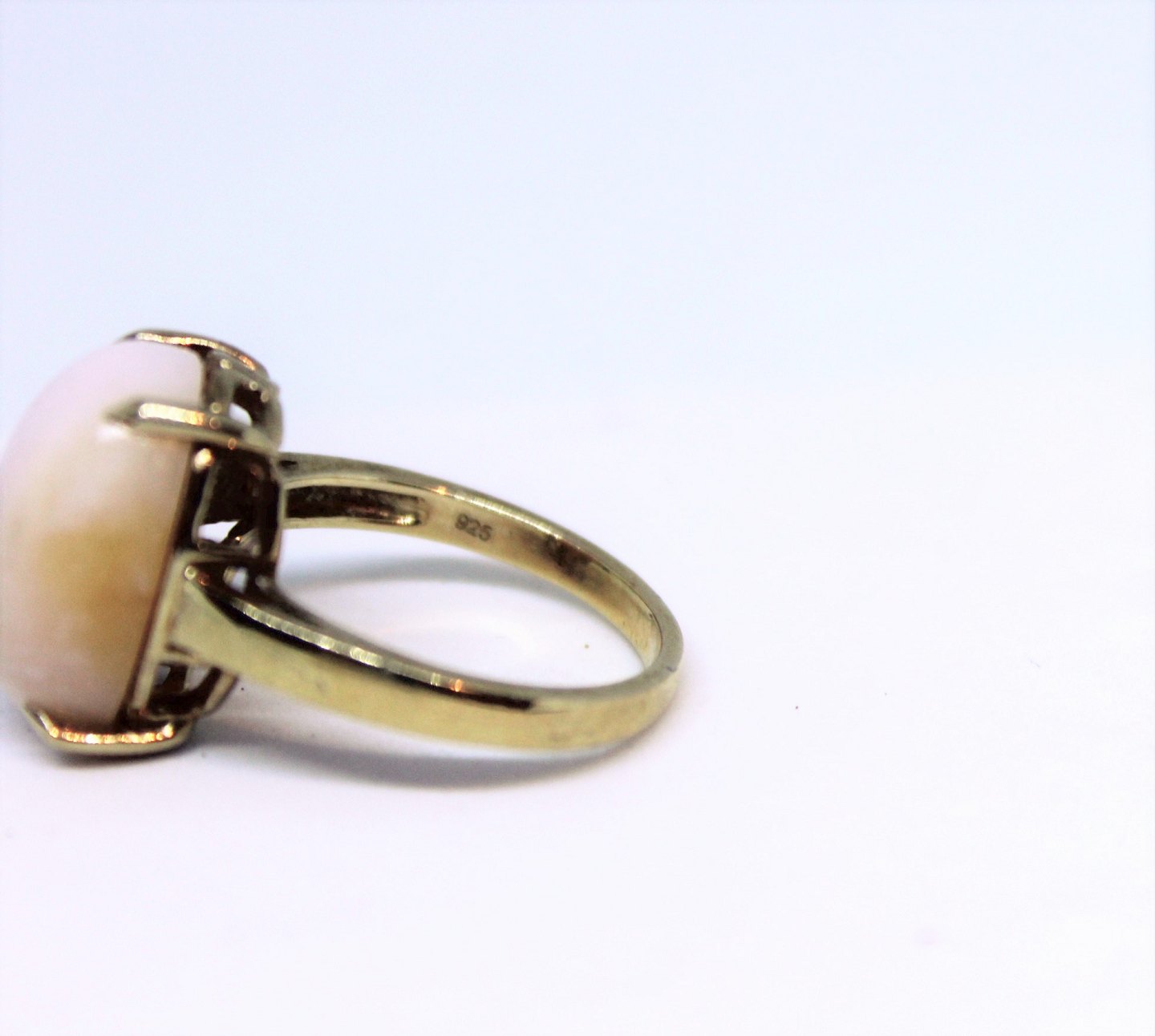 Gilded ring of 925 sterling silver decorated with large pale pink stone and stamped Krzi.