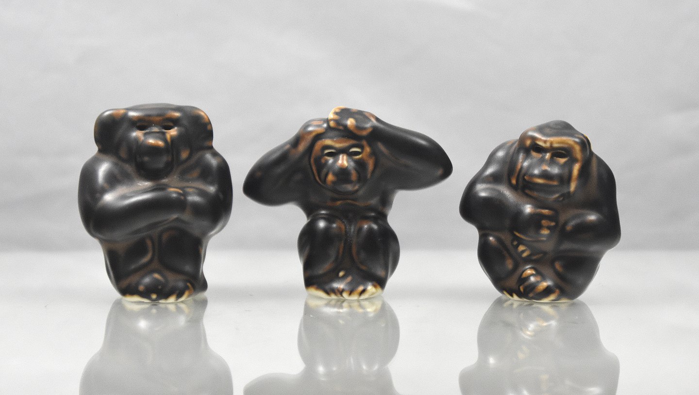 Figur i brunt stentøj med motiv af chimpanse nr. 20219
