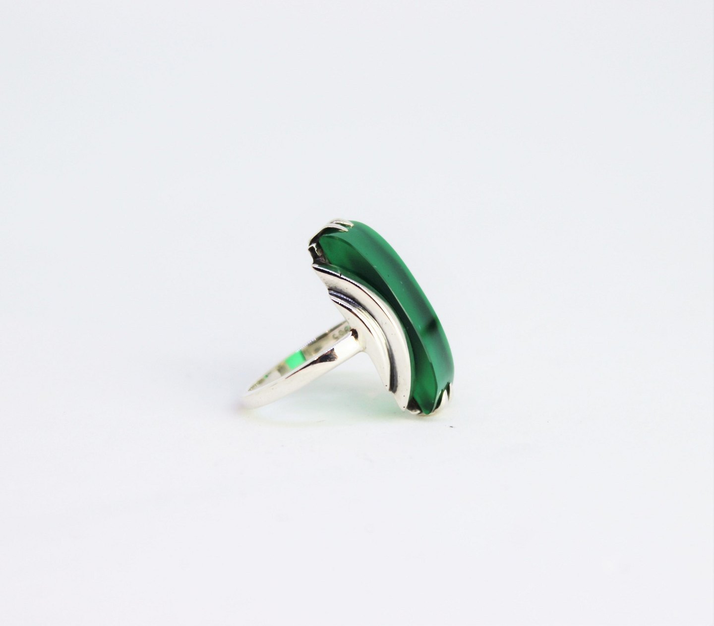 Ring of 925 sterling silver decorated with green jade.