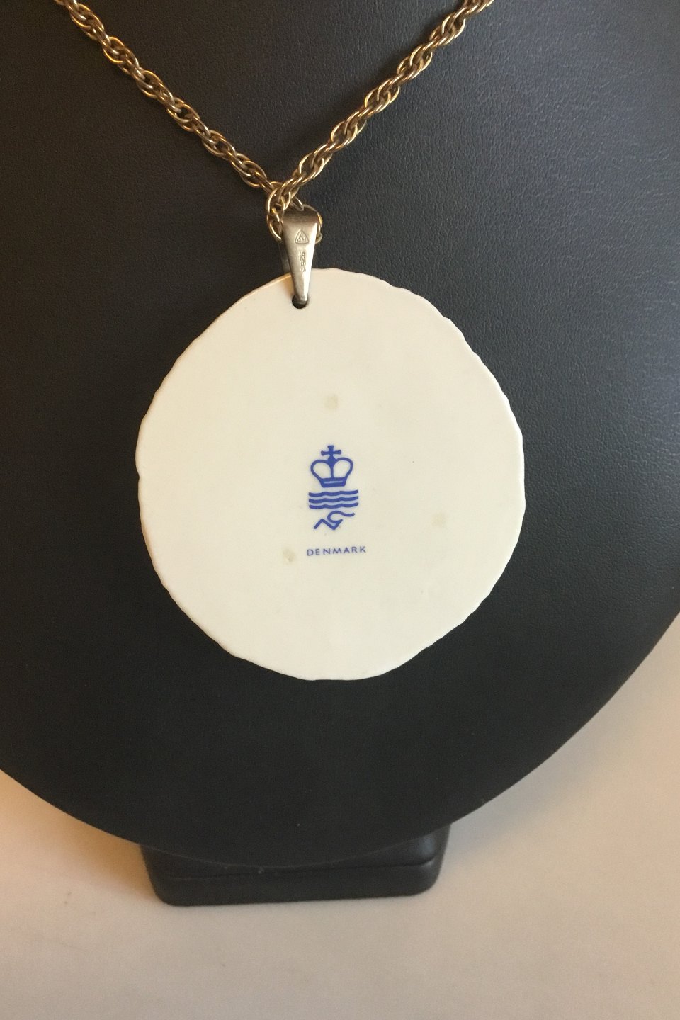 Royal Copenhagen Vedhæng a fporcelæn med gulddekoration. Designet af Nils Thorson. Sterling sølv af Anton Michelsen