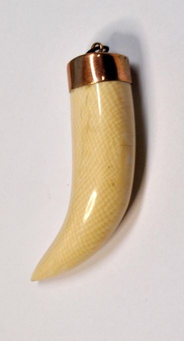 Antikt halssmykke med elfenben med 9 CT guld. 19. årh. L.: 5,6 cm.