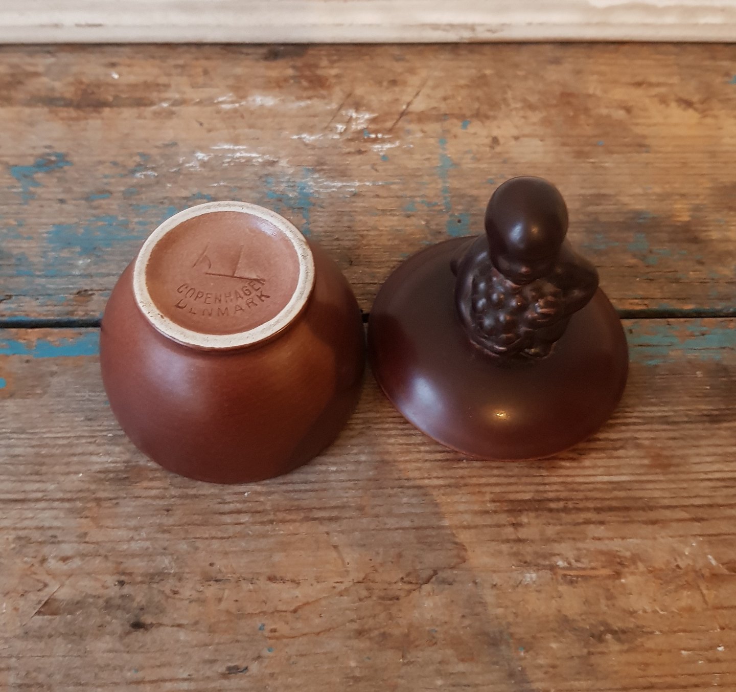 Aluminum small lid bowl with boy with grape bunch on the lid