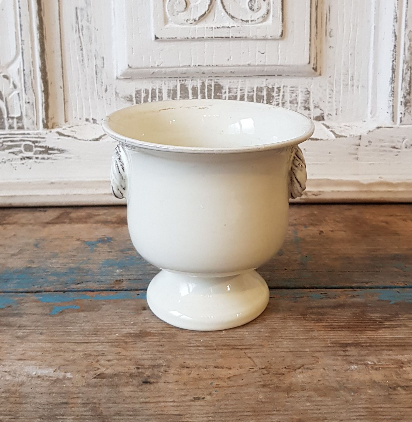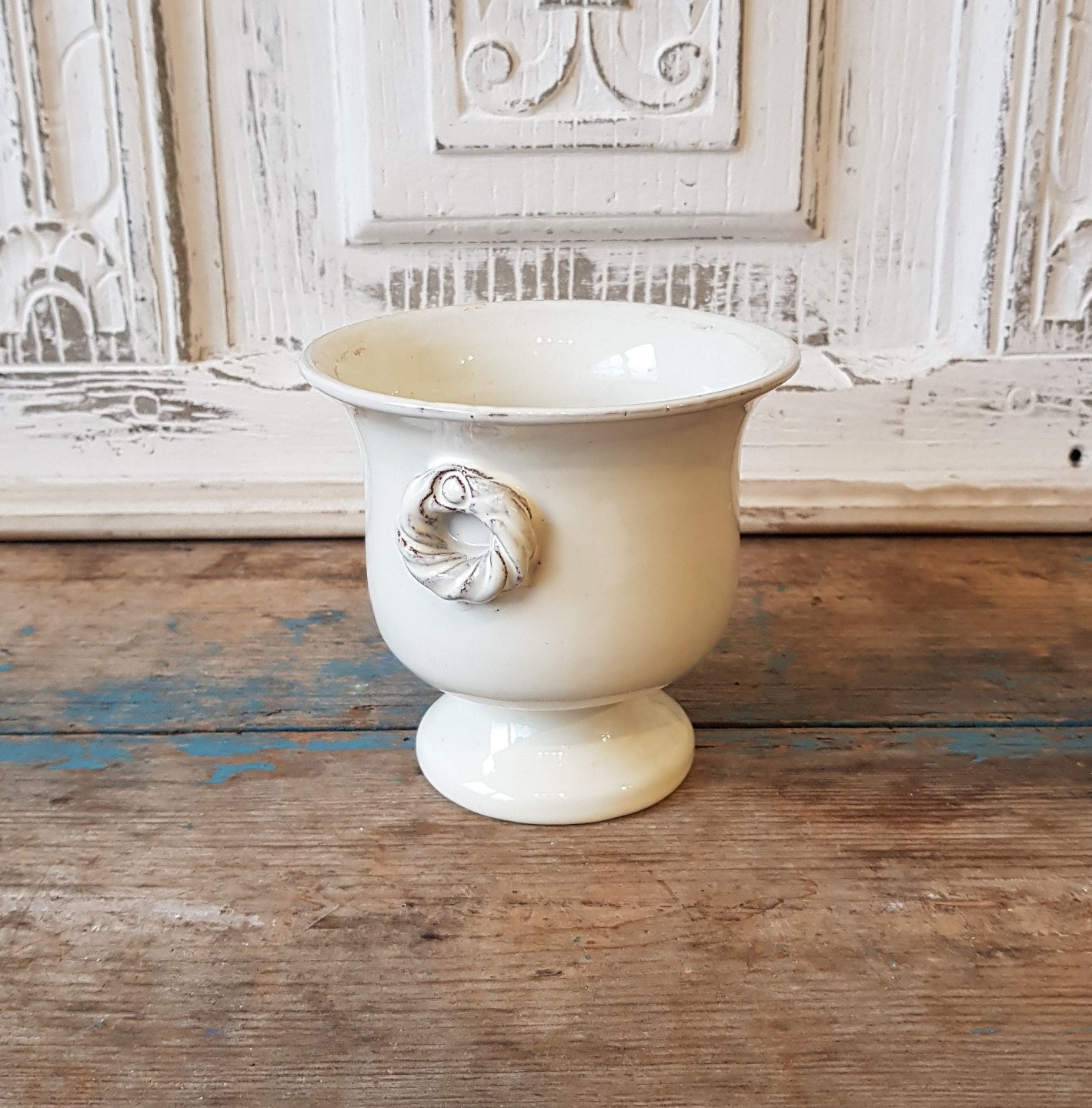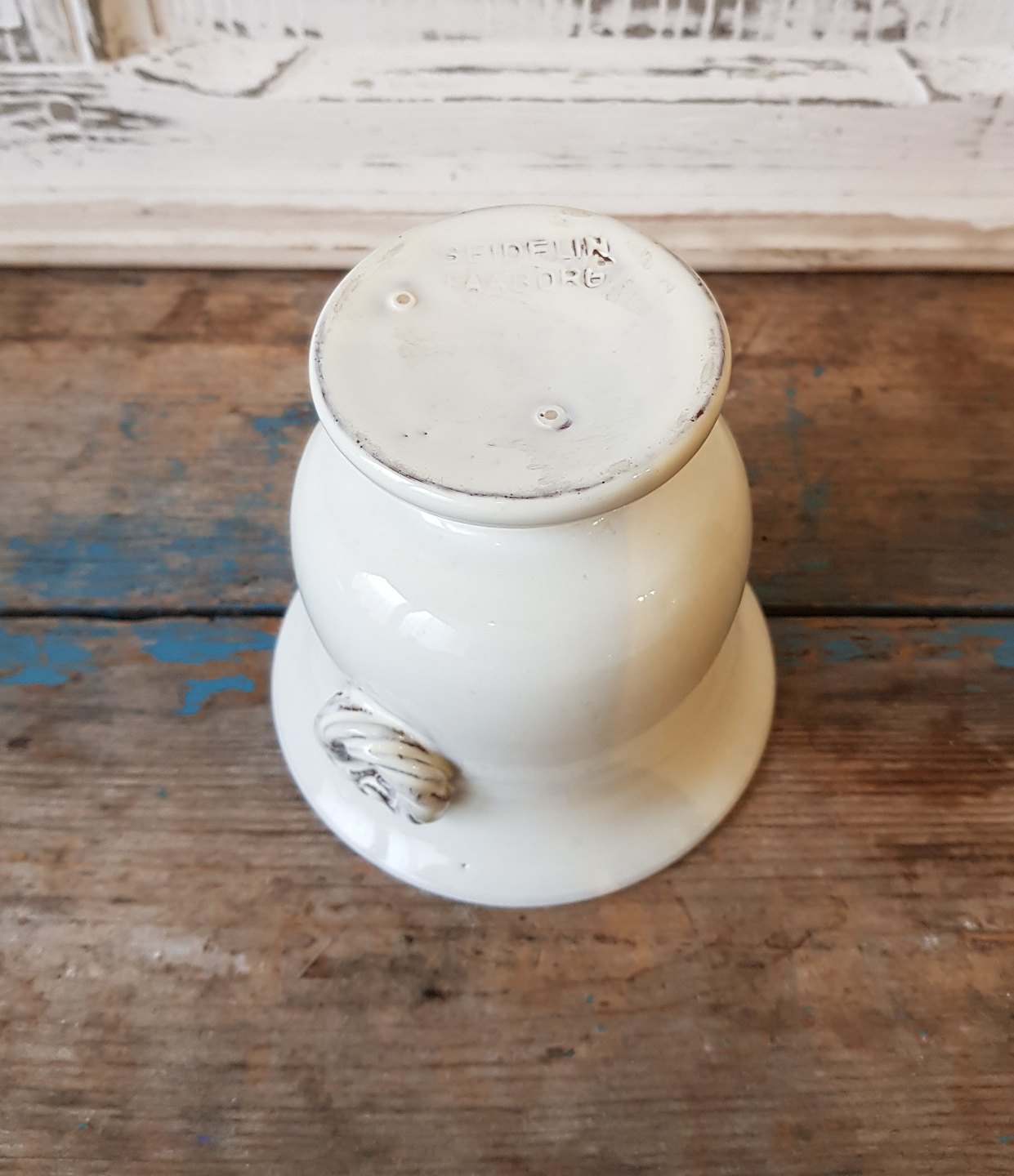 Seidelin - Faaborg cremefarvede keramik vase på fod med hanke.