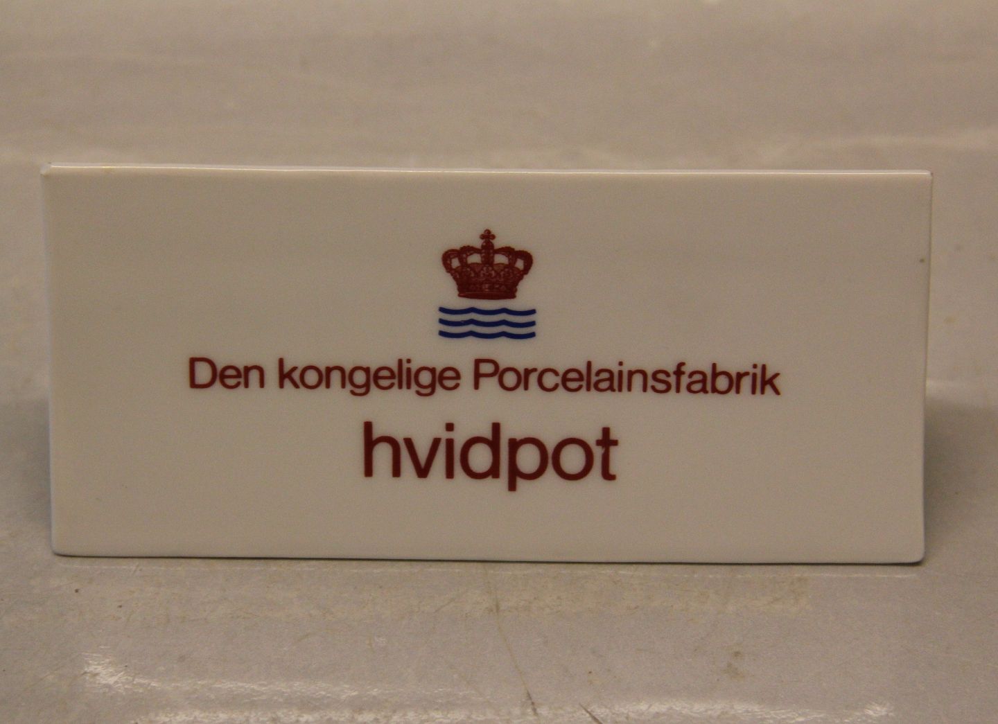 Kongelig Dansk porcelænsskilt - Hvidpot Grethe Meyer ca 7.5 x 14 cm
