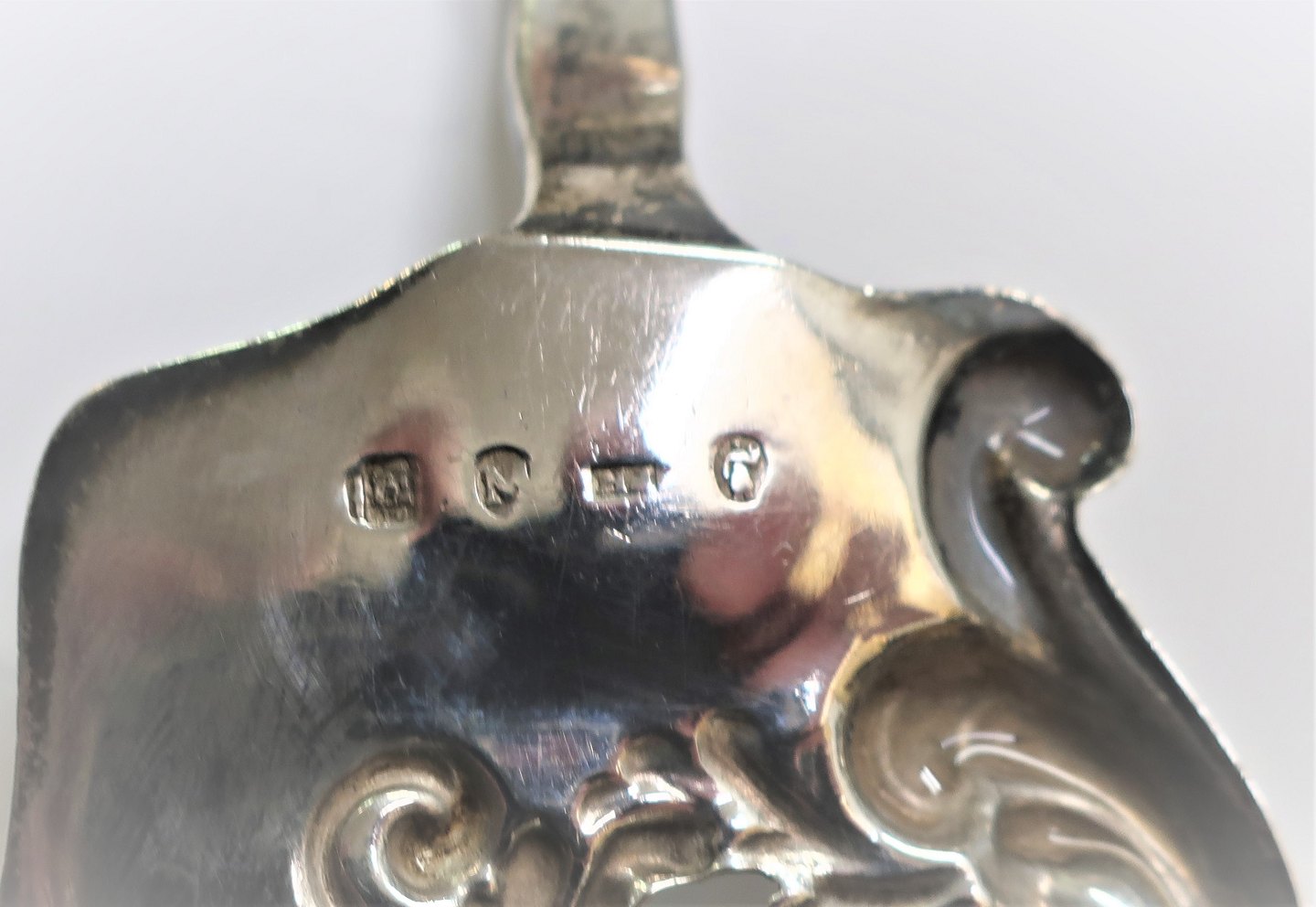 Peter Hertz. Sølvbestik (830). Fiskespade med perlemor skaft. Længde 27,5 cm. Produceret 1839.