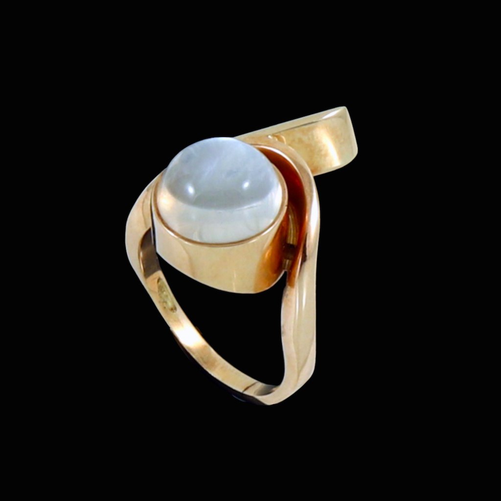 Dansk Design. Ring i 14k guld med månesten. 1960erne.