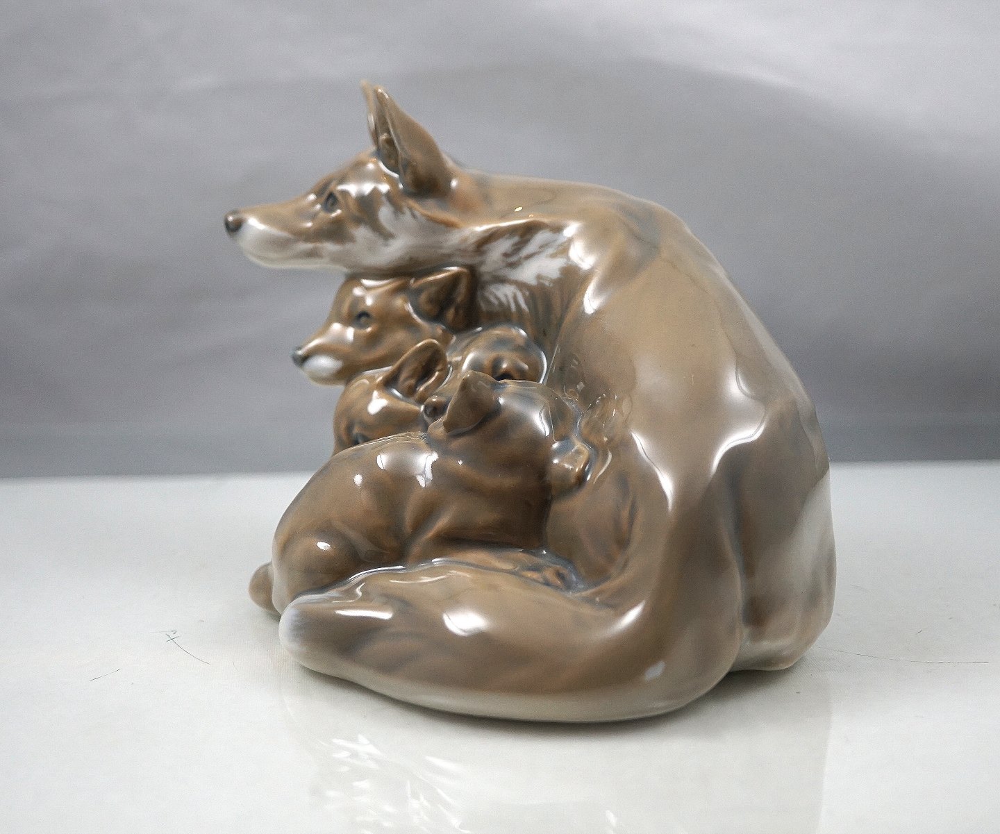 Royal Copenhagen, RC., Den kongelige Porcelænsfabrik, KGL., Kongelig, porcelæn, figur, rævemor, unger, mikkelræv