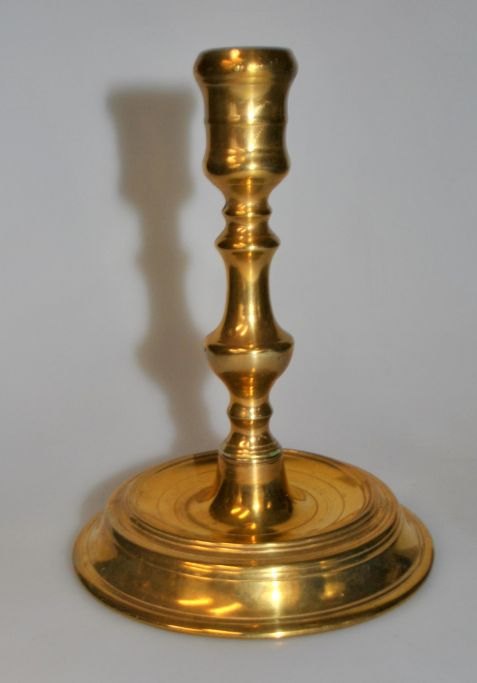 Dänische barocke Messing leuchter. Naestved Tup, 18. Jh., Rundfuß und profilierter Stiel. Gestempelt: SP. H: 14,2 cm.