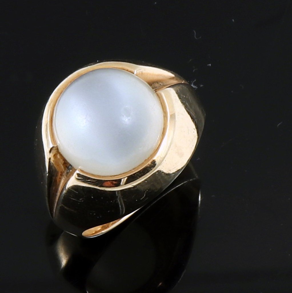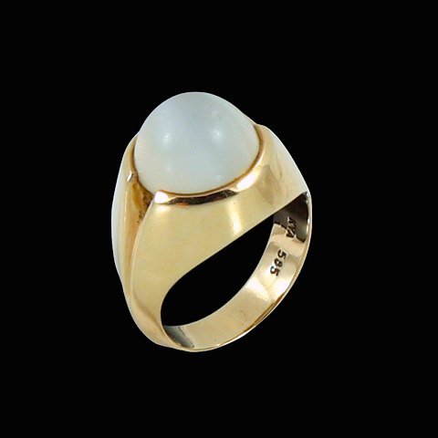 Knud V. Andersen. Ring i 14k guld med månesten.