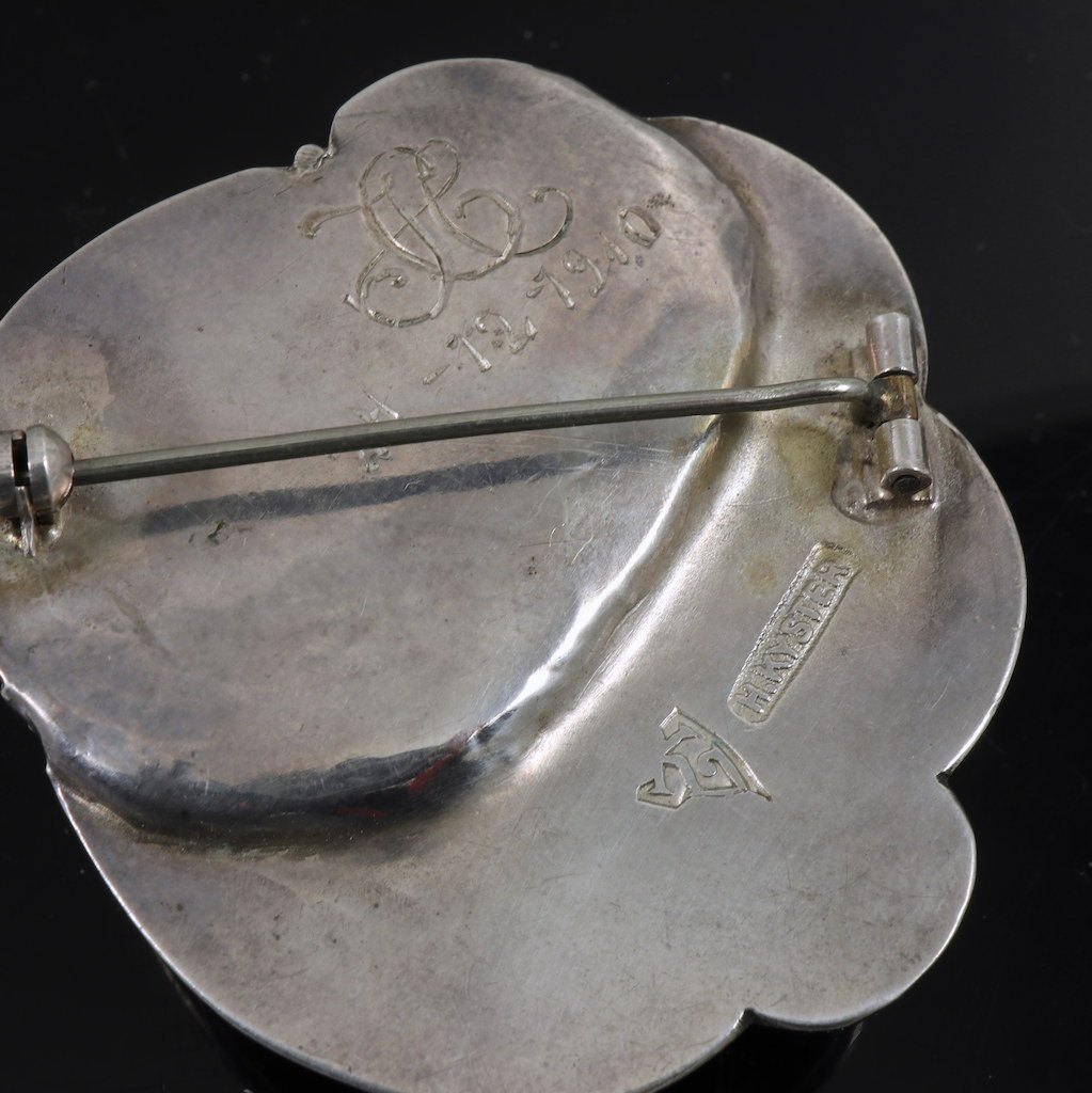 Thorvald Bindesbøll (1846-1908). Broche i Sølv med rav - Holger Kyster.