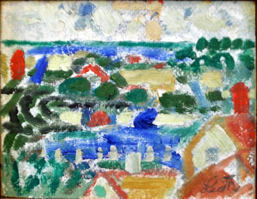 Thellefsen, Leo (1909 - 1997) Danmark: Augustdage 1988. Olie på blød masonit. Signeret. 13 x 16,5 cm.