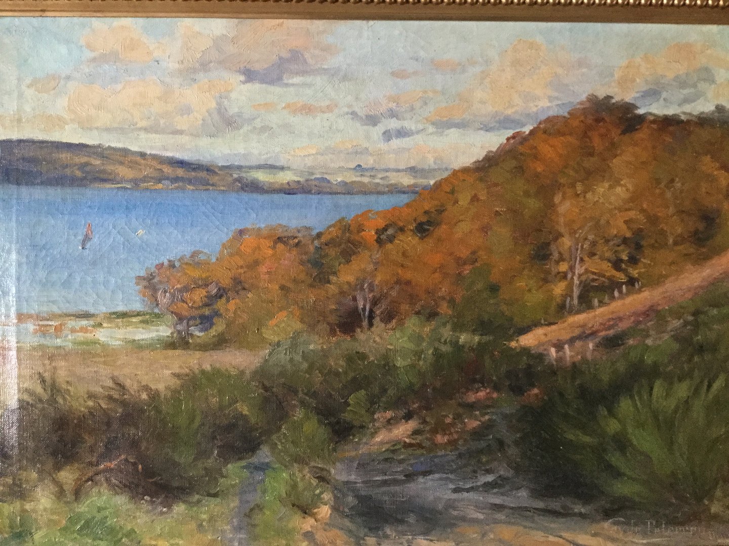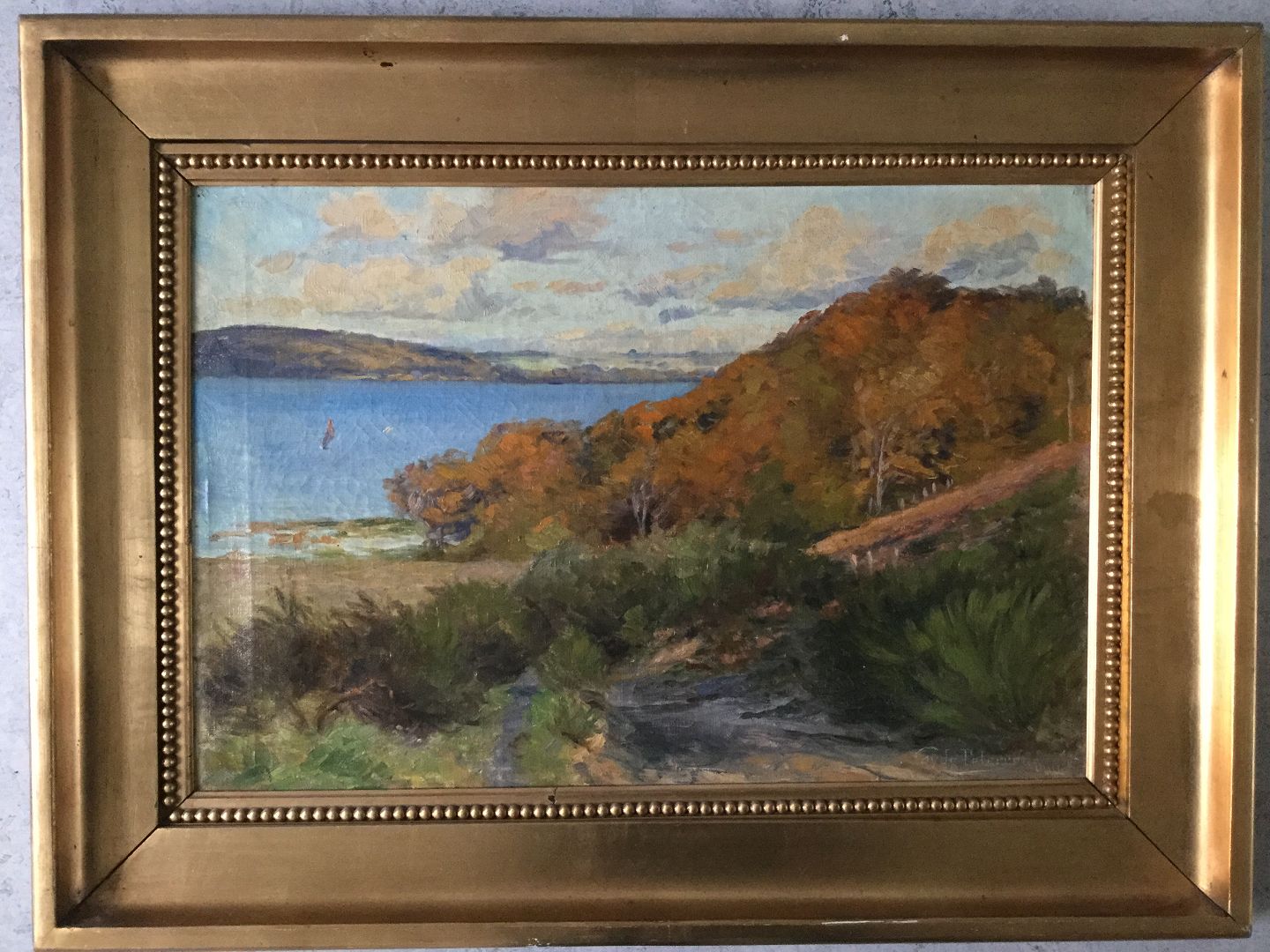 Bagpå flere auktionsmærkater samt teksten "Tilhører Gyde Petersen".
