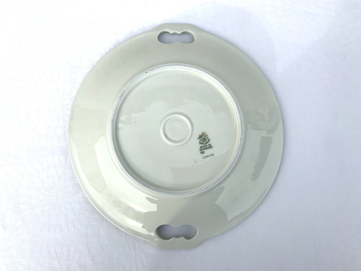 Bing & Grøndahl, Aakjær, Creme, Kagefad med hank #101, 26,5cm i diameter, 2.Sortering *Pæn stand*