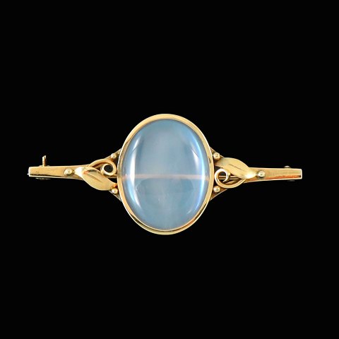 Ib Due. Skønvirke Broche i 14k Guld med månesten.