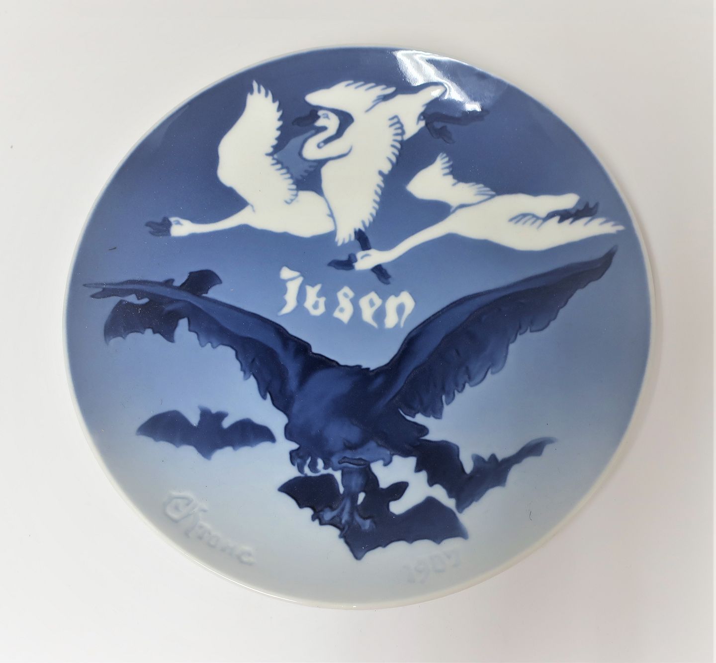 Bing & Grøndahl. Mindeplatte. Til Minde om Henrik Ibsen. 1907. Diameter 20 cm. (1 sortering)