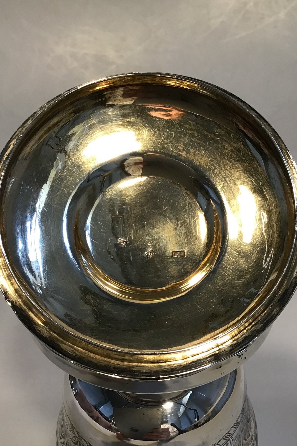 Russisk Sølv Lågpokal Niello Dekoration Indvendig forgyldt Måler 16.5 cm Vægt 210 gr Svenske Importmærker
