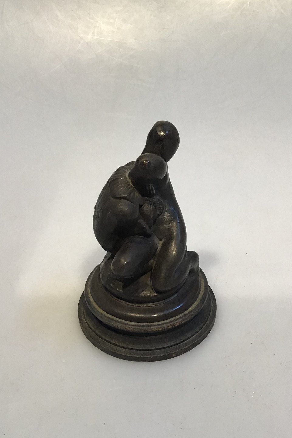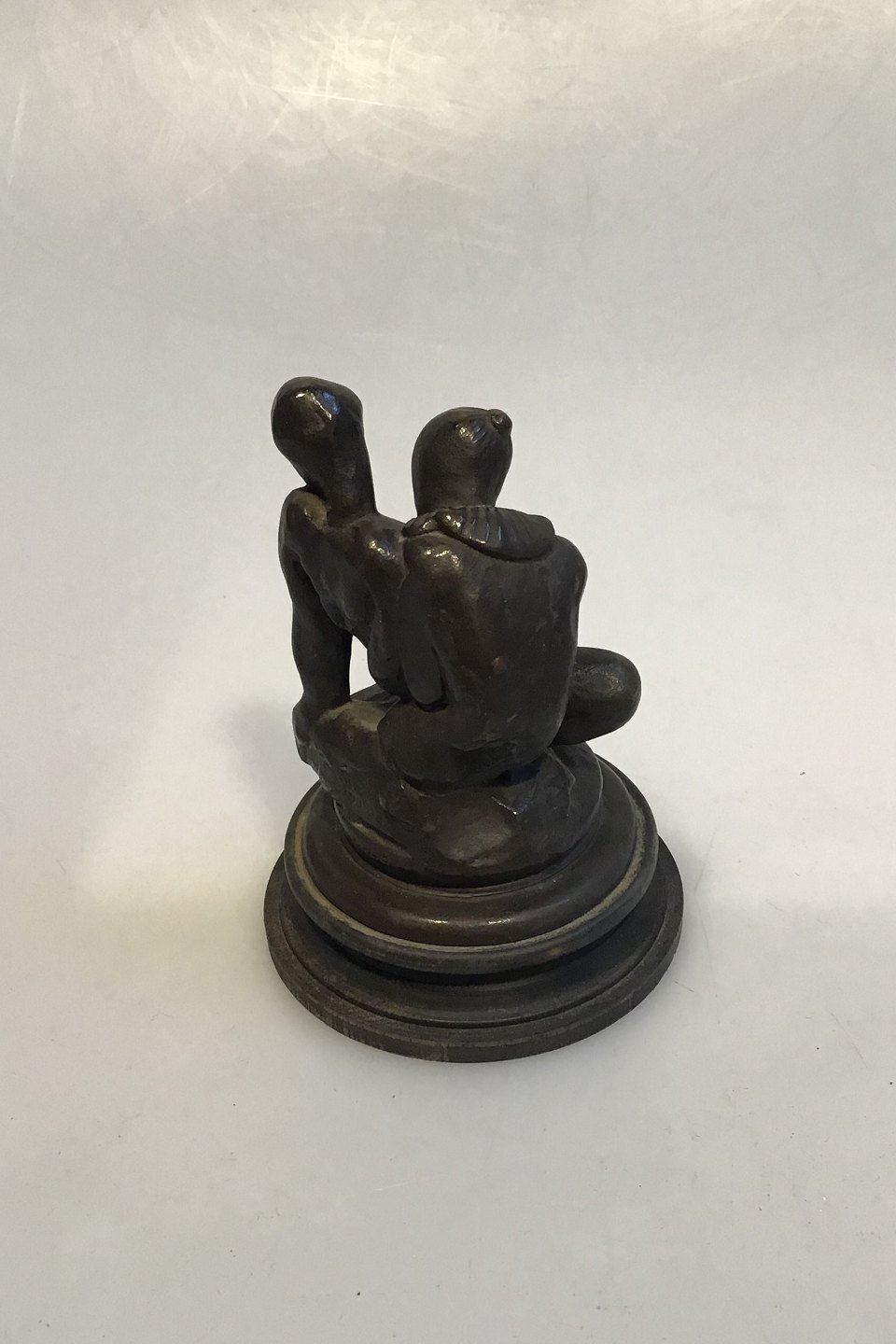 Gerhard Henning: Lovers, 1913. Signed monogram. Marked Expl. 3. Figurine of dark patinated bronze on a wooden base. H. 10 cm(3 15/16 in)