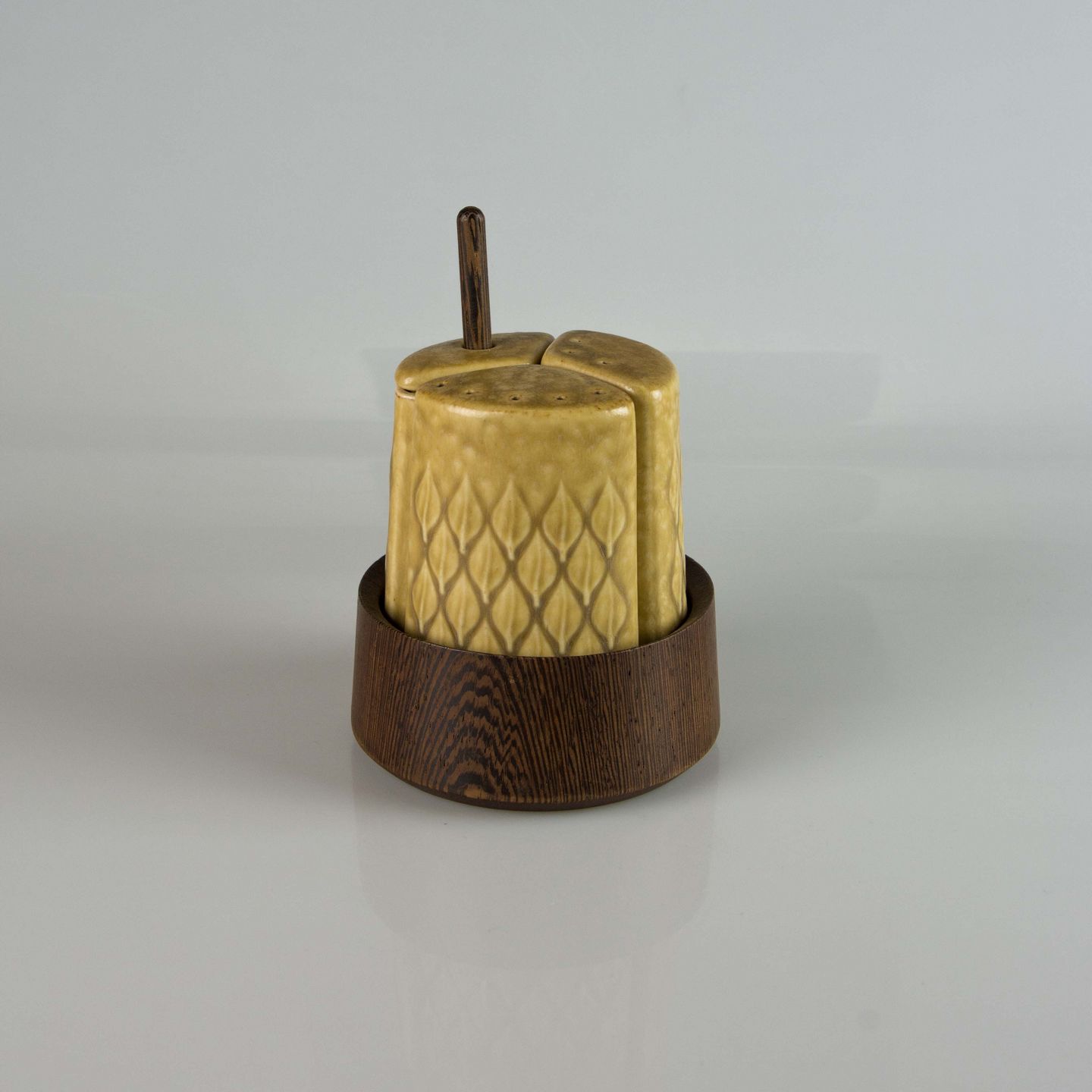 Sæt med saltbøsse, peberbøsse og sennepskrukke i stentøj fra stellet Relief