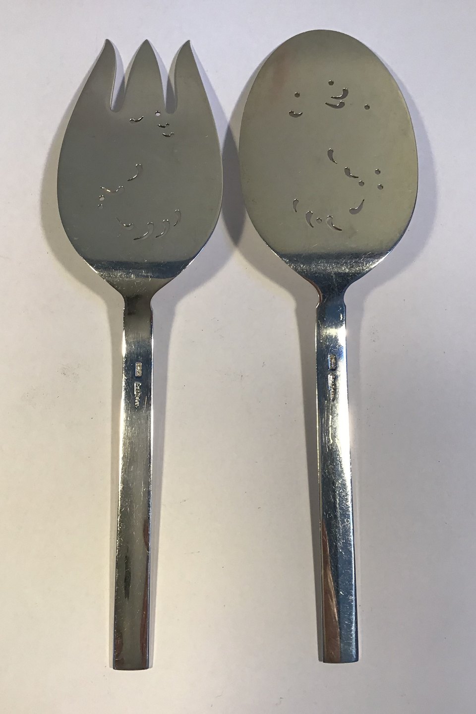 Evald Nielsen Sterling Sølv No 33 Fiskeserveringssæt (2) Måler L 24 cm