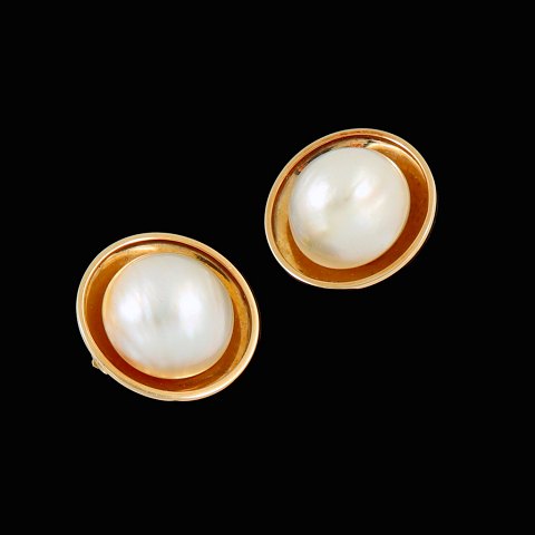 Hermann Siersbøl. Øreklips i 14k guld med perler.