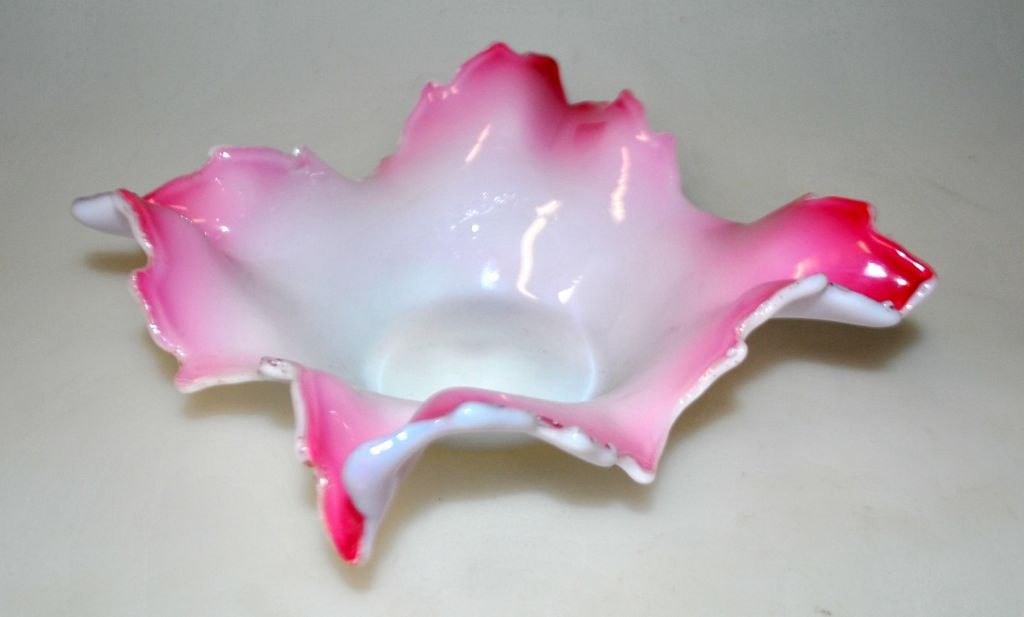 Antique braided bowl in white opaline glass with light pink edges, 19th century 16.5 x 16.5 cm.