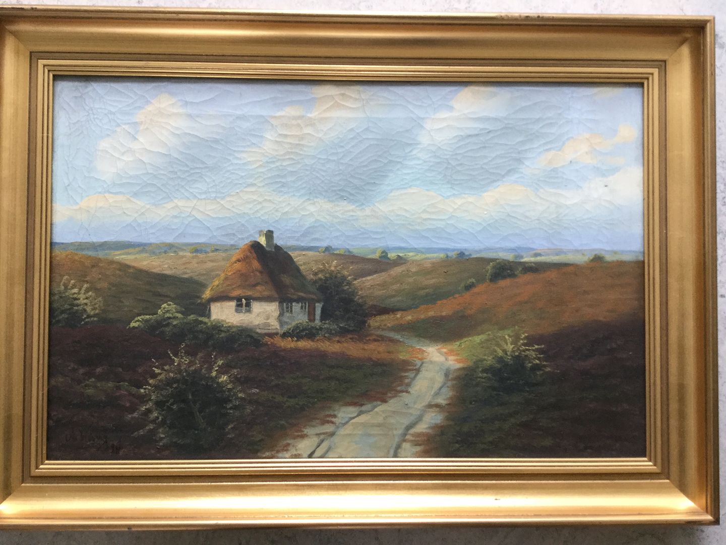 Maleri af Albert Wang - Bondehus på heden.