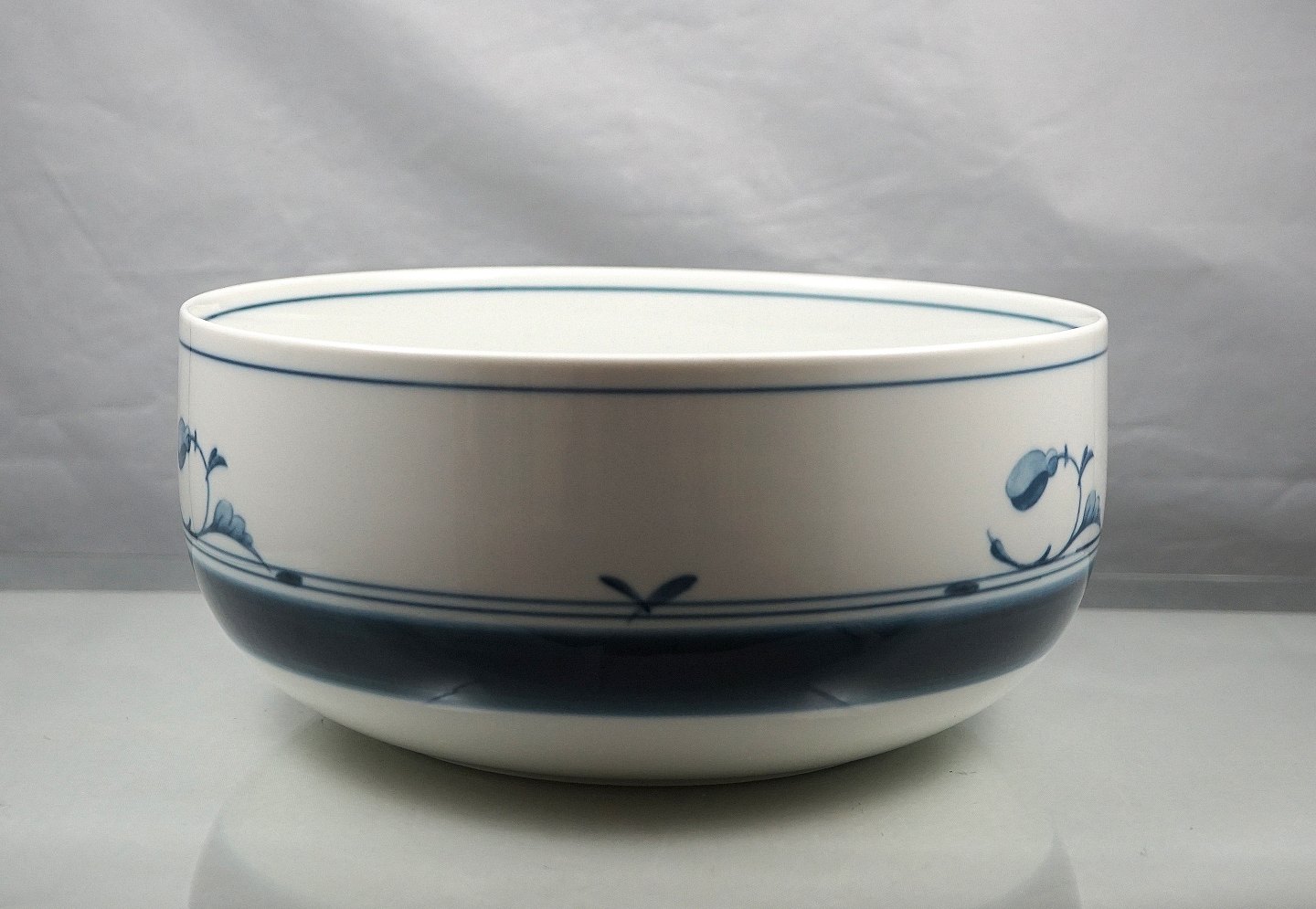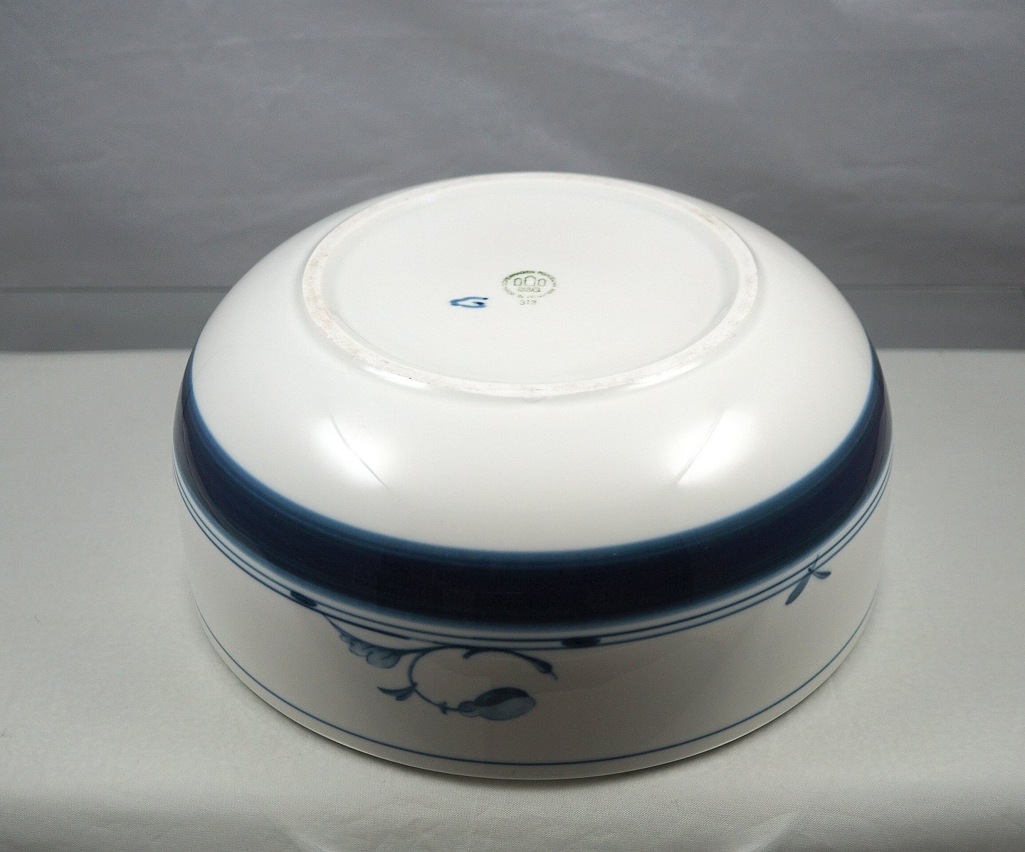 Bing & Grøndahl. Korinth skål nr. 313. Skålen er dekoreret med blå bånd og blå magnolia. Skålen er 2. sortering, men ellers uden skader