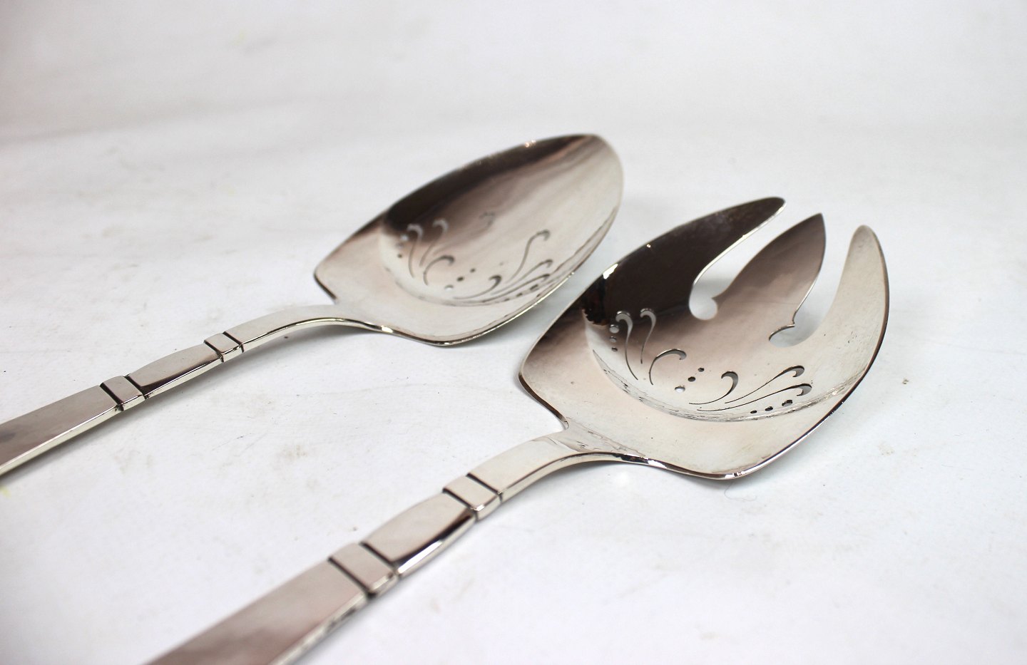 Serveringske og spade af andet mønster, tretårnet sølv.