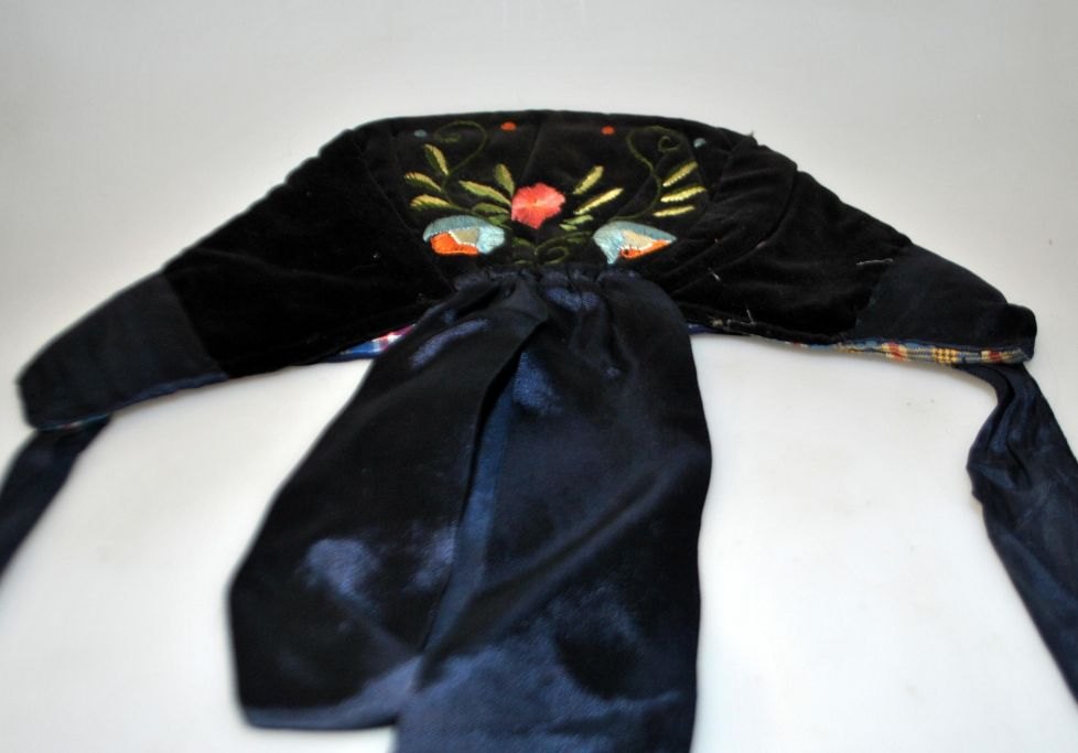 5 old Danish hats. Some antique. With silver thread, lace, etc. A few of them have a brand: Agnes Jensen, Durup Alle 80, tel: 941796. Note: Only 4 pcs. on the photo