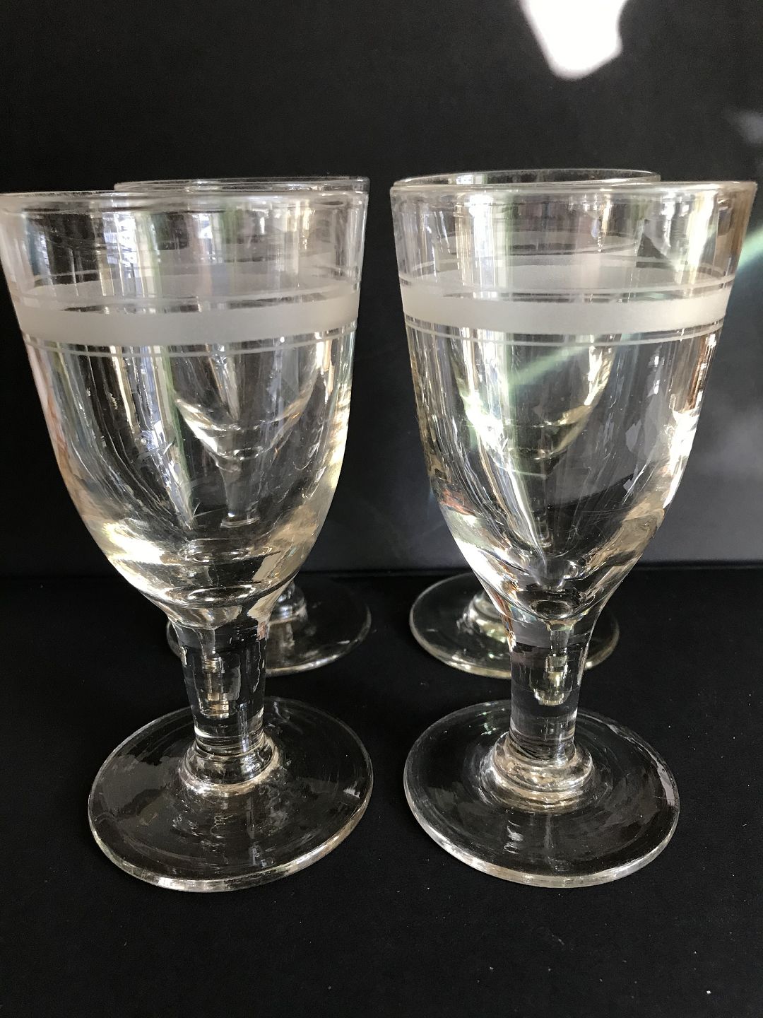 4 gamle glas med båndslibning højde 15 cm. Holmegaard glasværk.