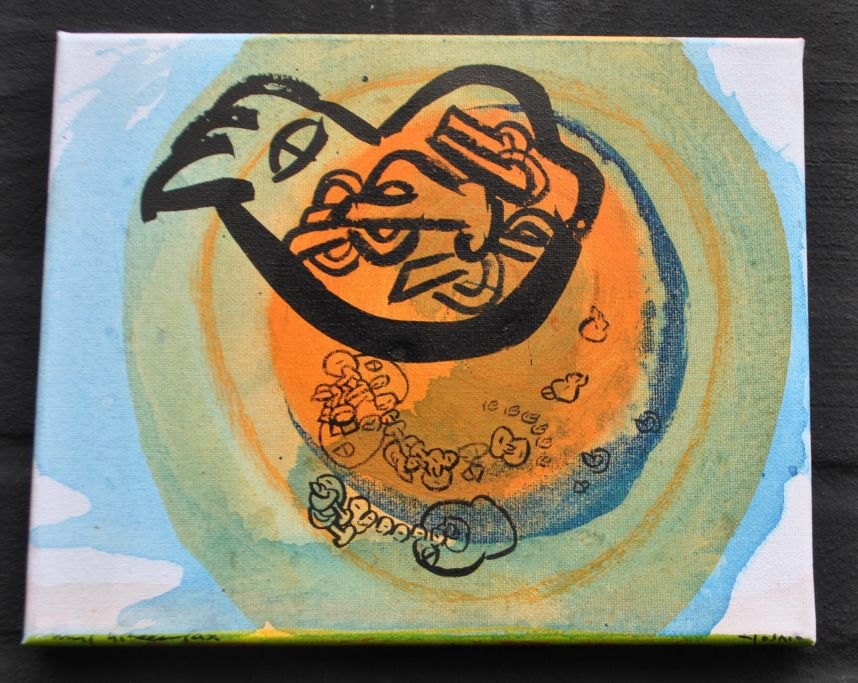 Nakajima, Yoshio (1940 -) Sverige/Japan: My green pax. Mixed media på lærred. Signeret. 22 x 27 cm.