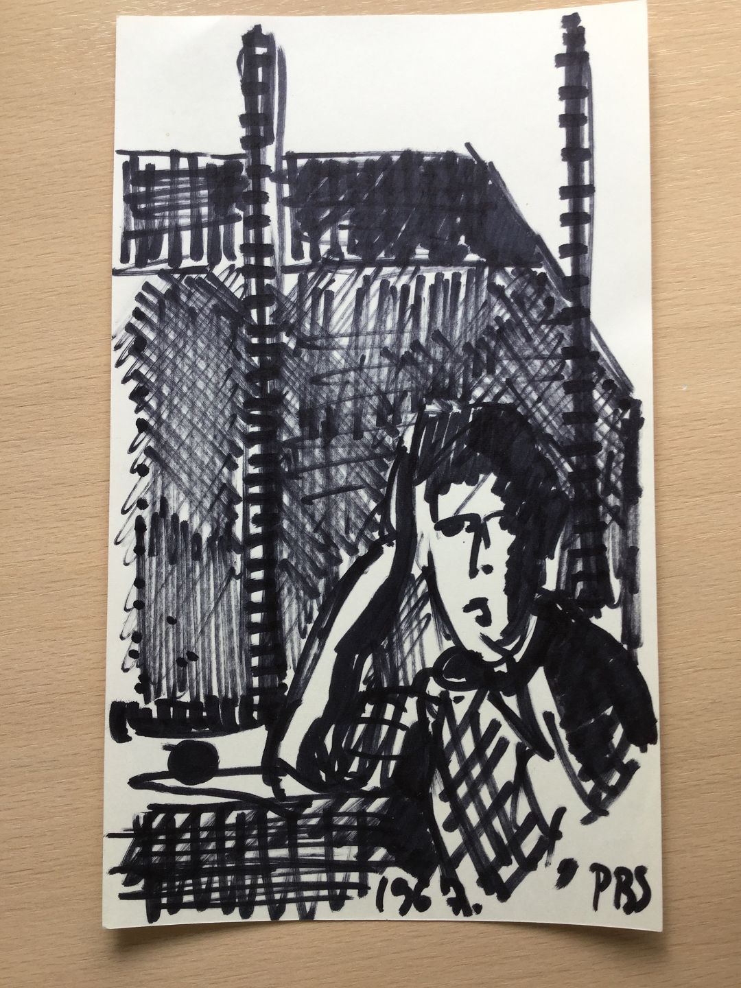 Tegning af Peder Brøndum Sørensen - Person ved vindue 1967.
