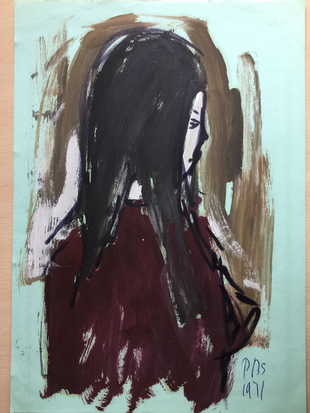 Pastel af Peder Brøndum Sørensen - Ung pige 1971.