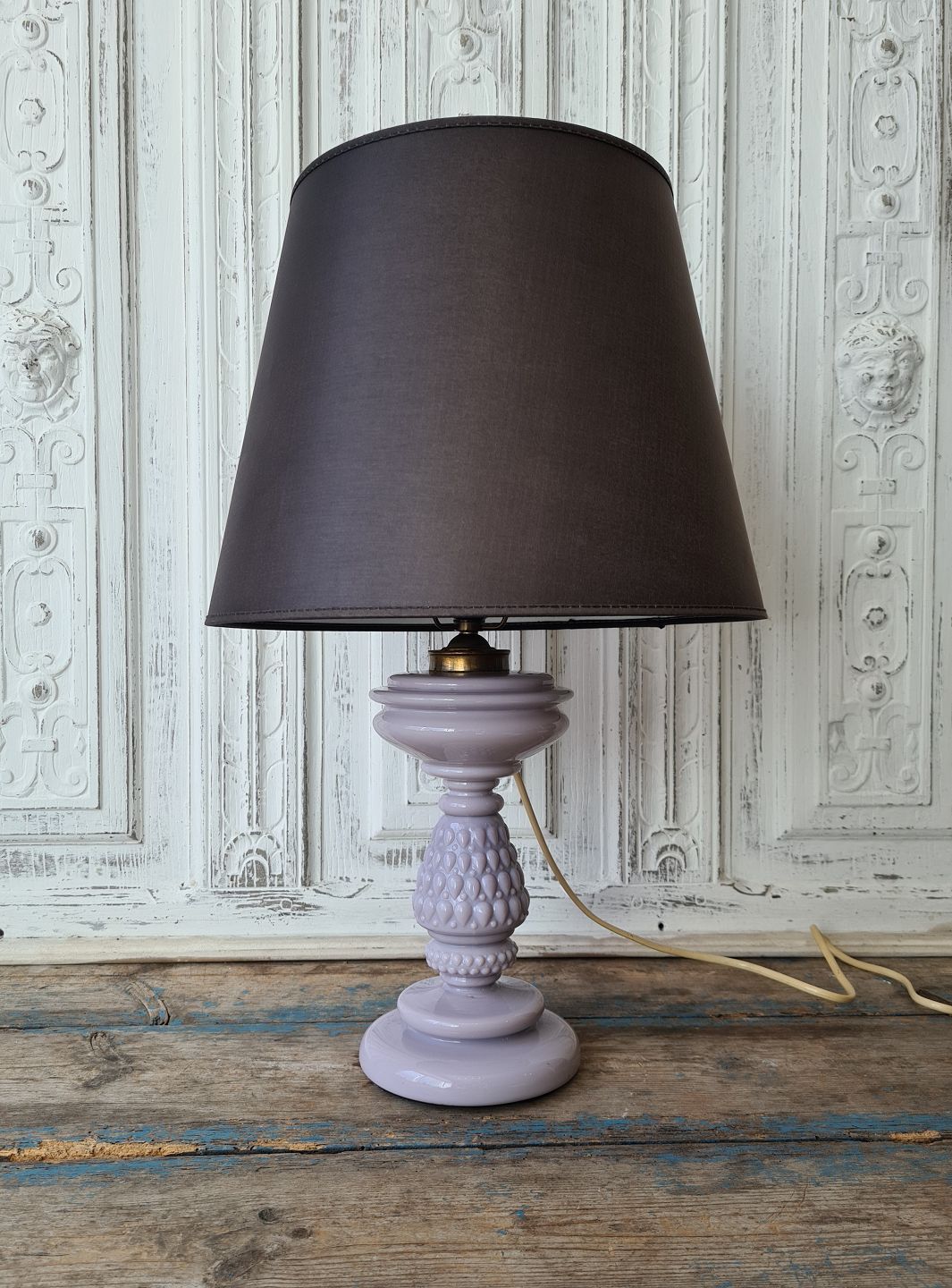 Lavendelfarvet opaline olielampe omlavet til el.