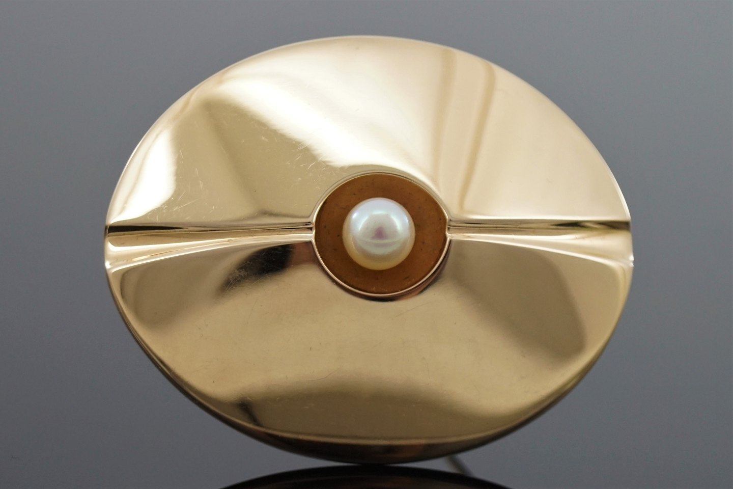 Hans Hansen; Oval broche af 14 kt. guld med perle #107