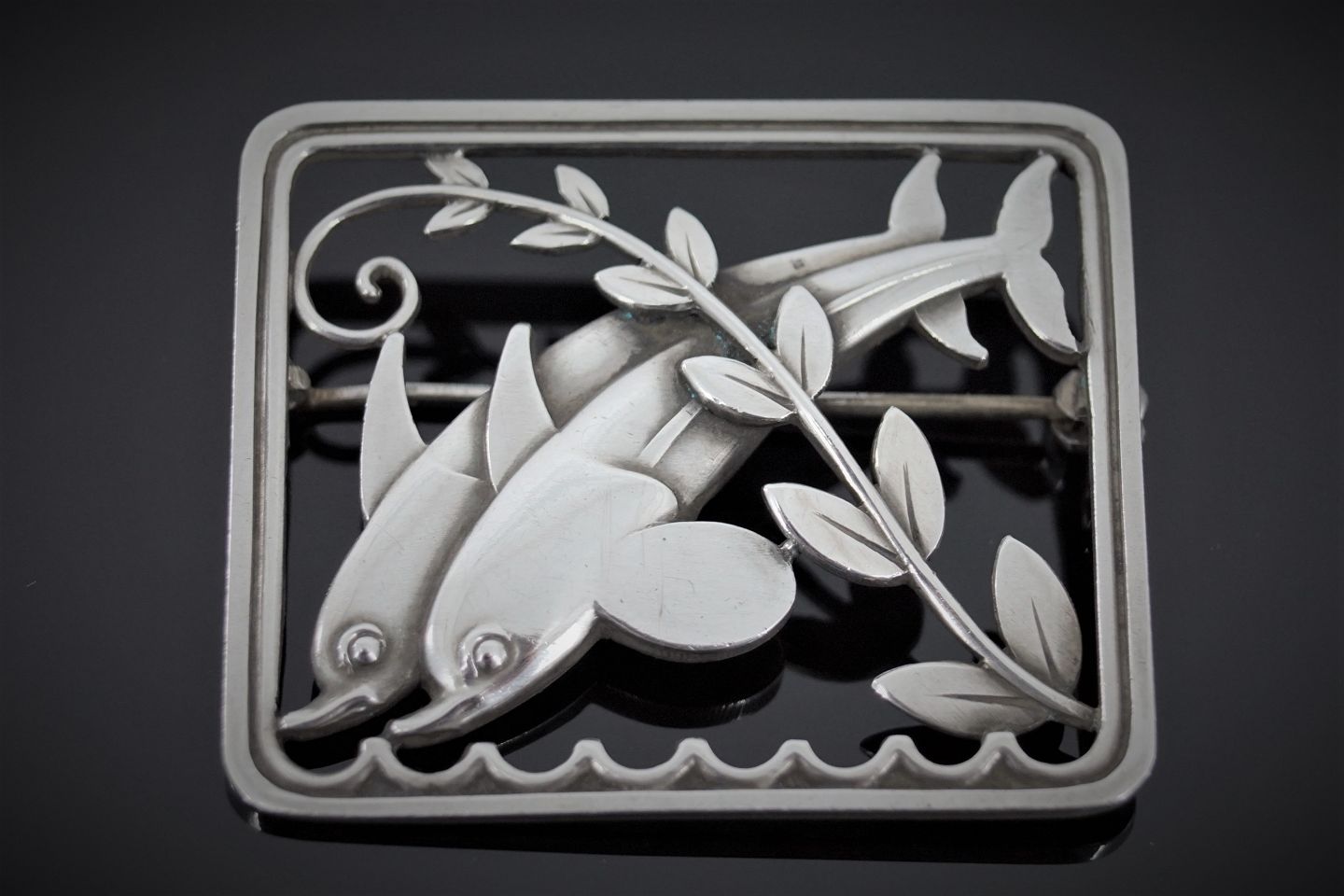 Georg Jensen, Arno Malinowski; A brooch of sterling silver, dolphins, #251