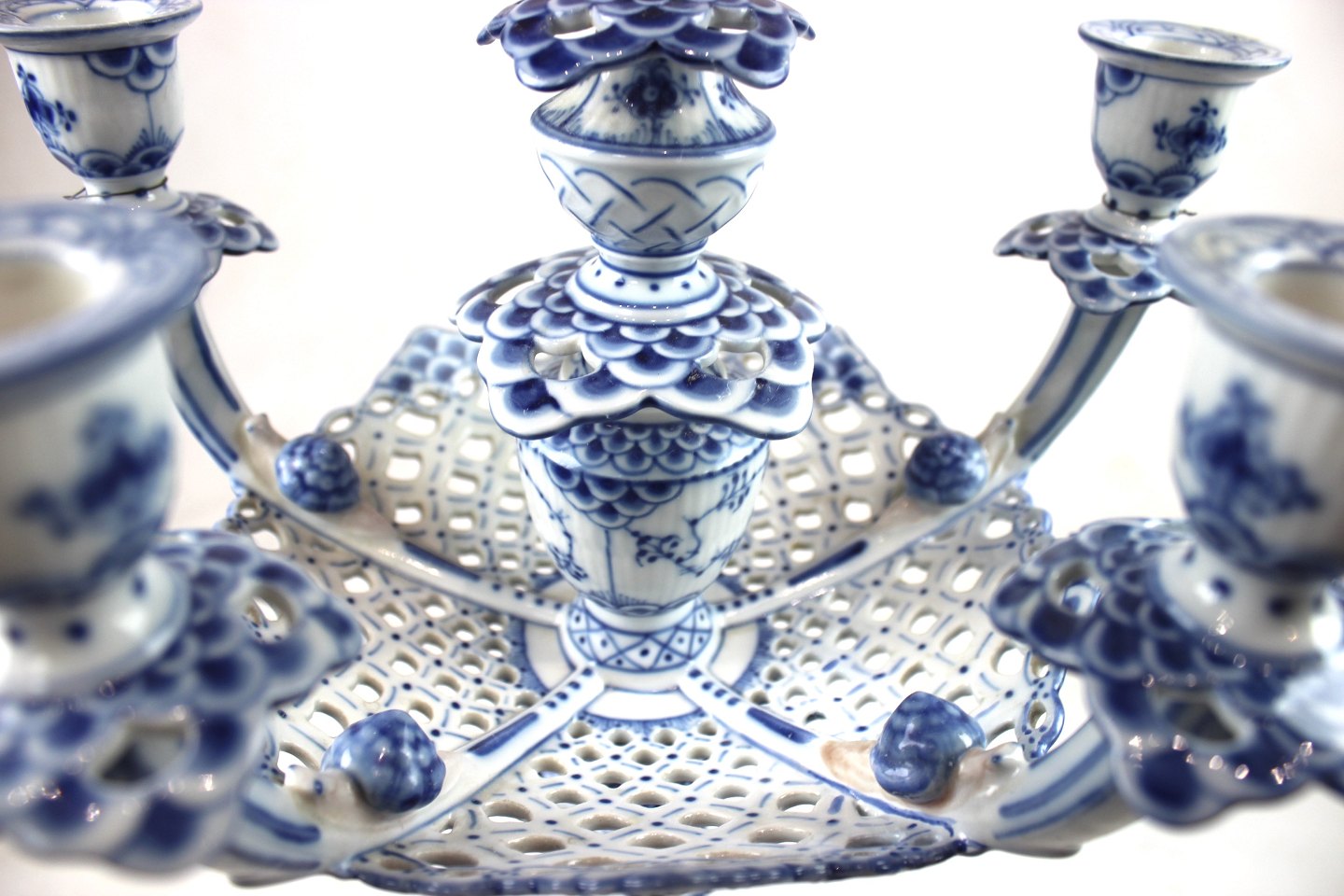 Musselmalet Helblone, also known as "Full Lace," is known for its fine, hand-painted lace edges and detailed floral decorations. Each candelabra is carefully hand-painted by experienced artists, making each one unique.