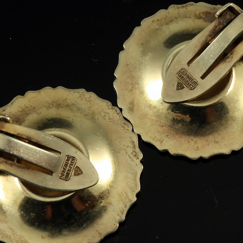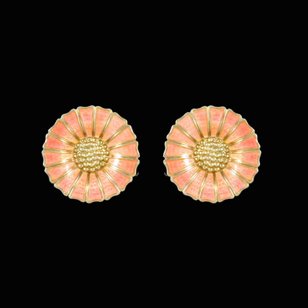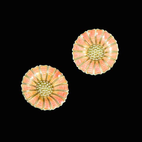 A. Michelsen Marguerit / Daisy Øreklips i forgyldt Sterling Sølv med Rosa emalje - 24mm.