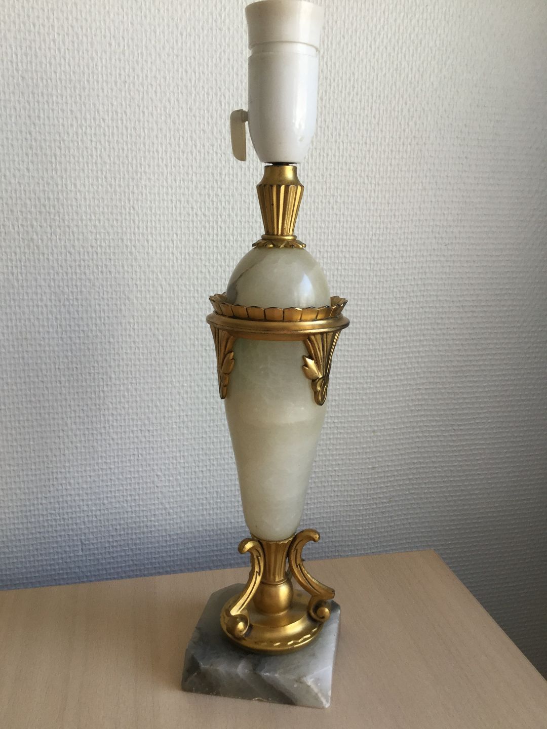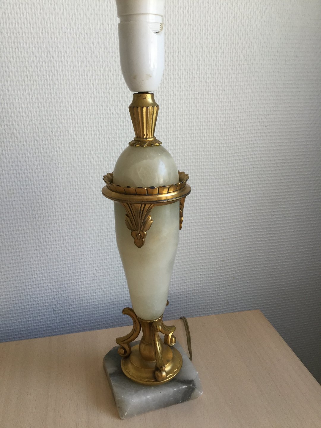 Bordlampe i alabast og forgyldt bronze.