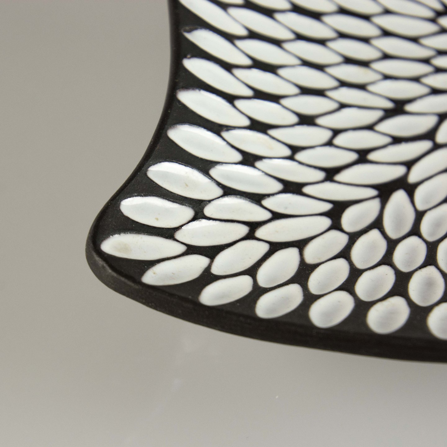 Nyereformet fad i keramik med glaseret hvidt mønster