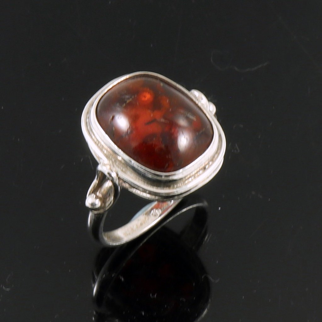 Einer Fehrn. Ring i Sterling Sølv med rav.