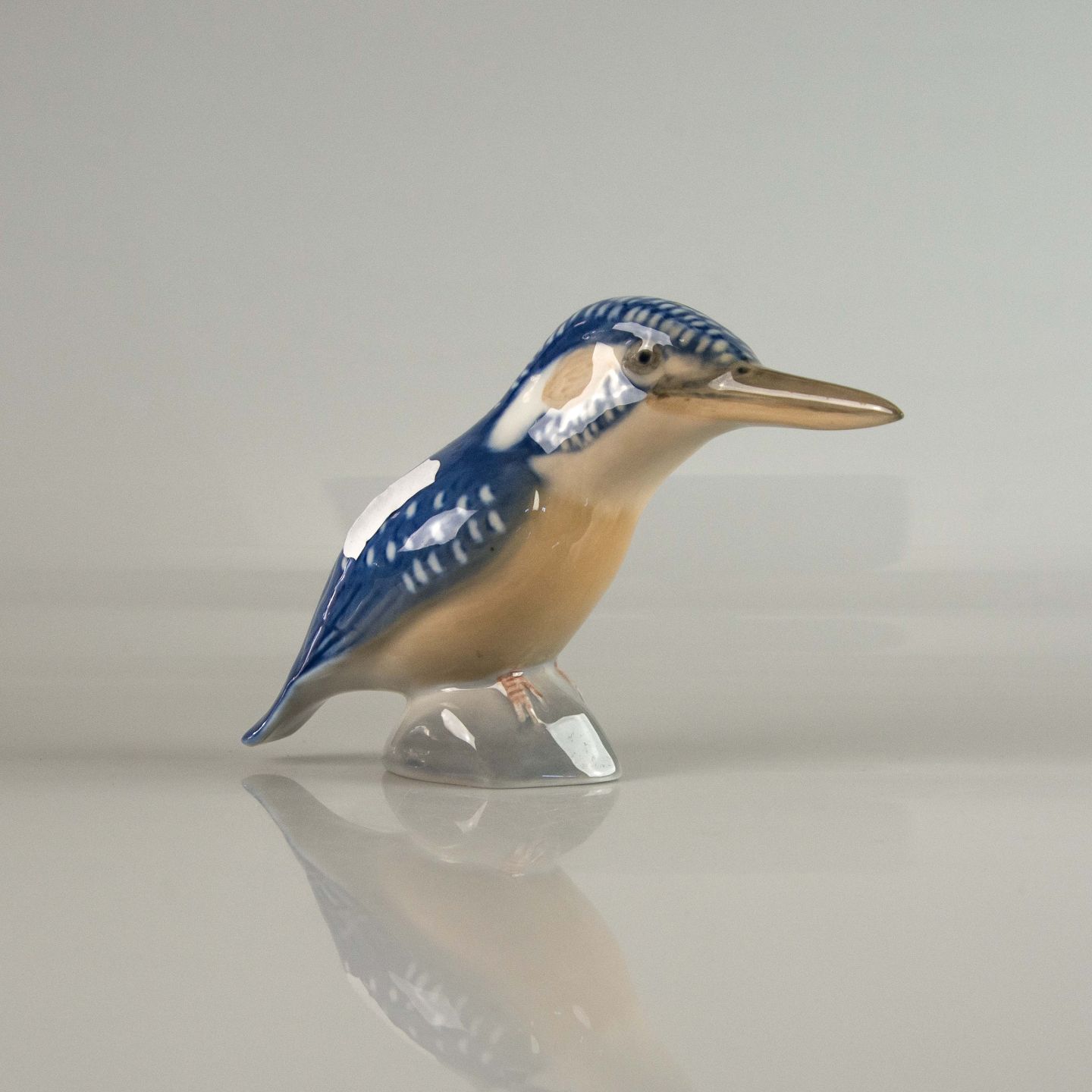 Figur i porcelæn med motiv af isfugl på sten nr. 3234