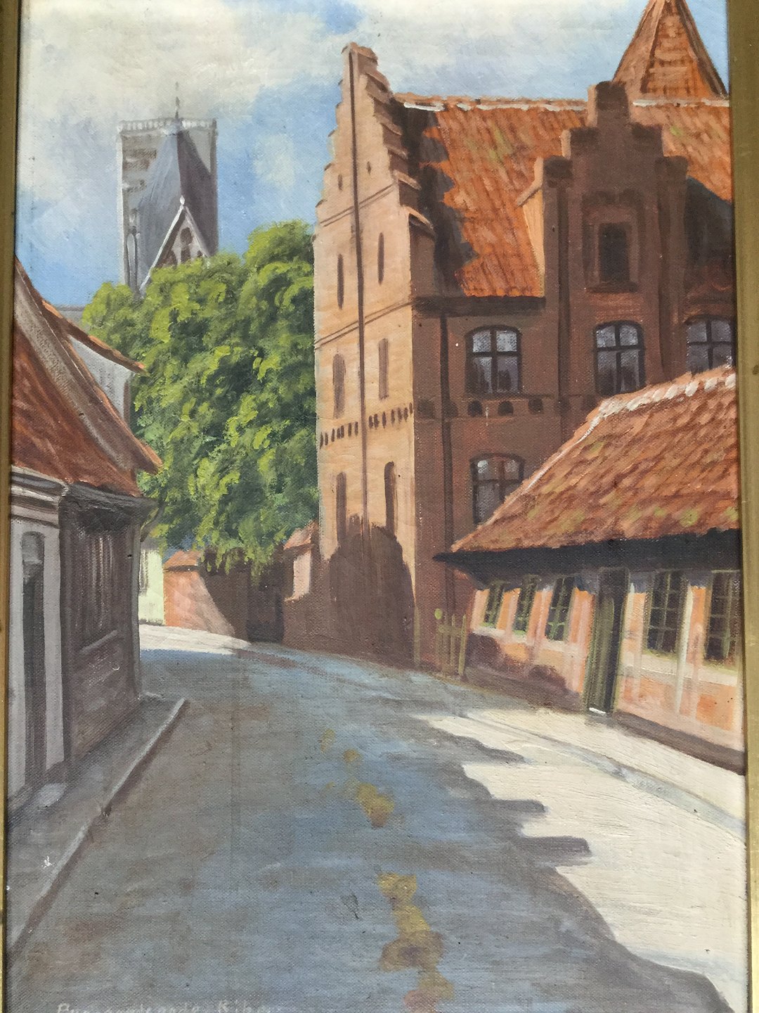 Maleri af Alfred Jensen - Parti fra Puggaardsgade i Ribe.
