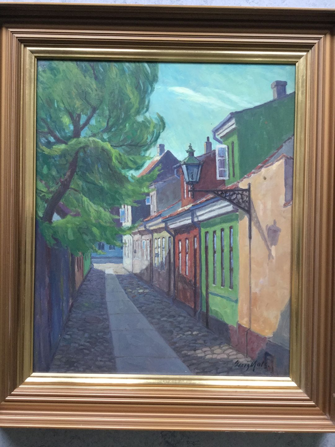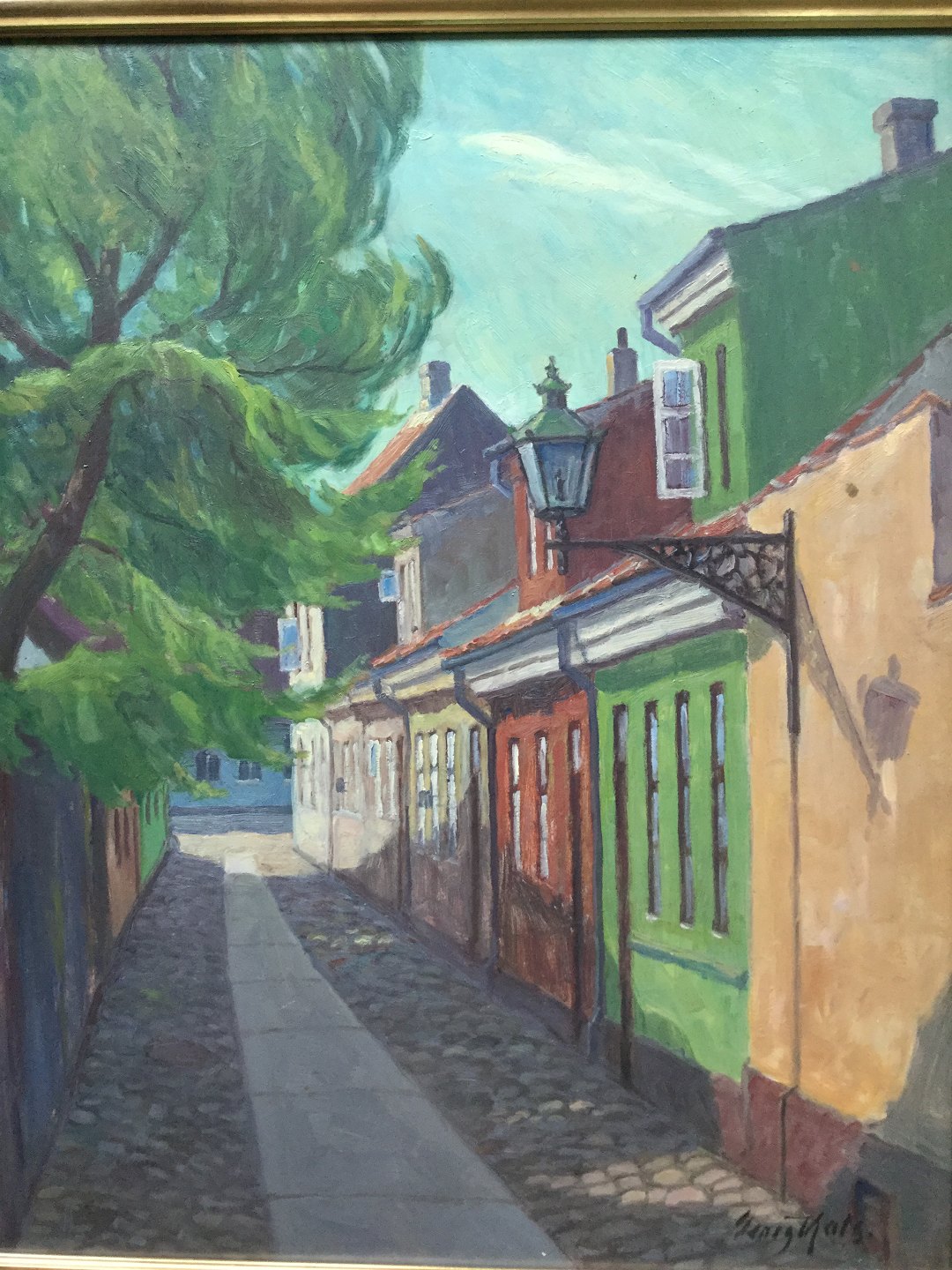 Maleri - Axel Møller - Parti fra Skolegade i Aalborg (nuv. Vingårdsgade) - sign. med pseudonym: Georg Hals