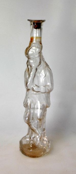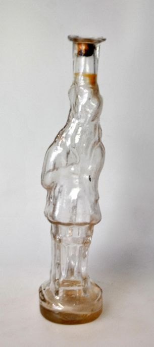 Figure bottle in clear glass, 1885. The lazy boy. Kastrup, Denmark.