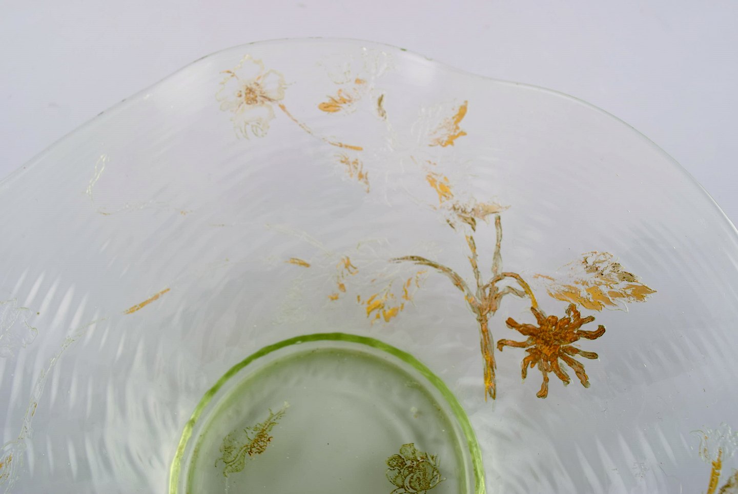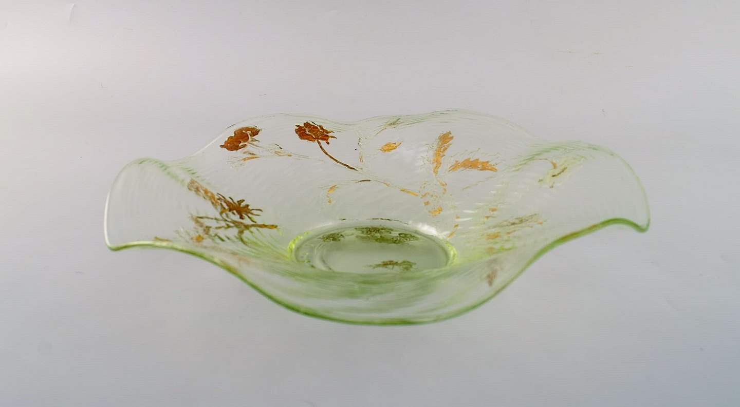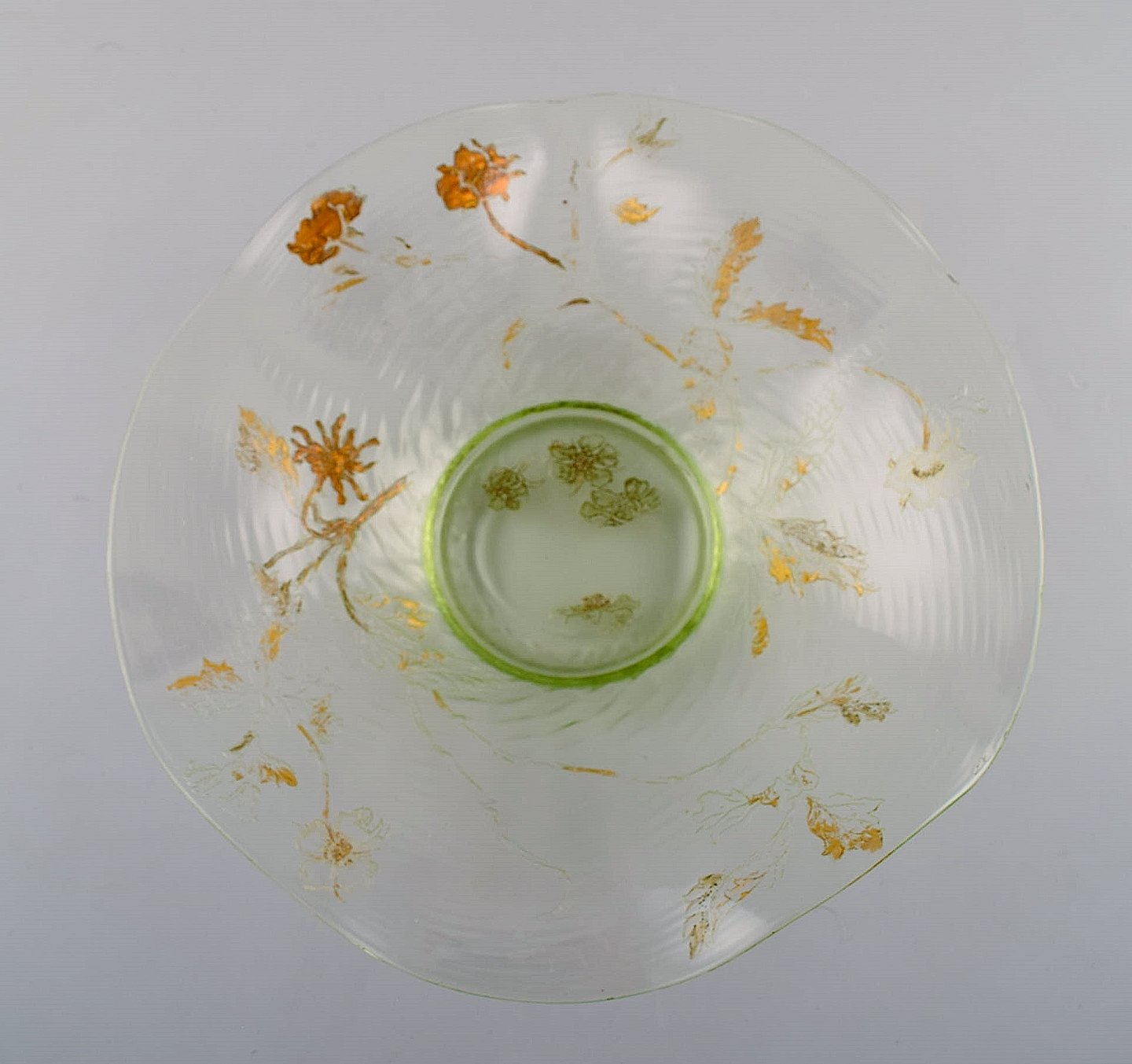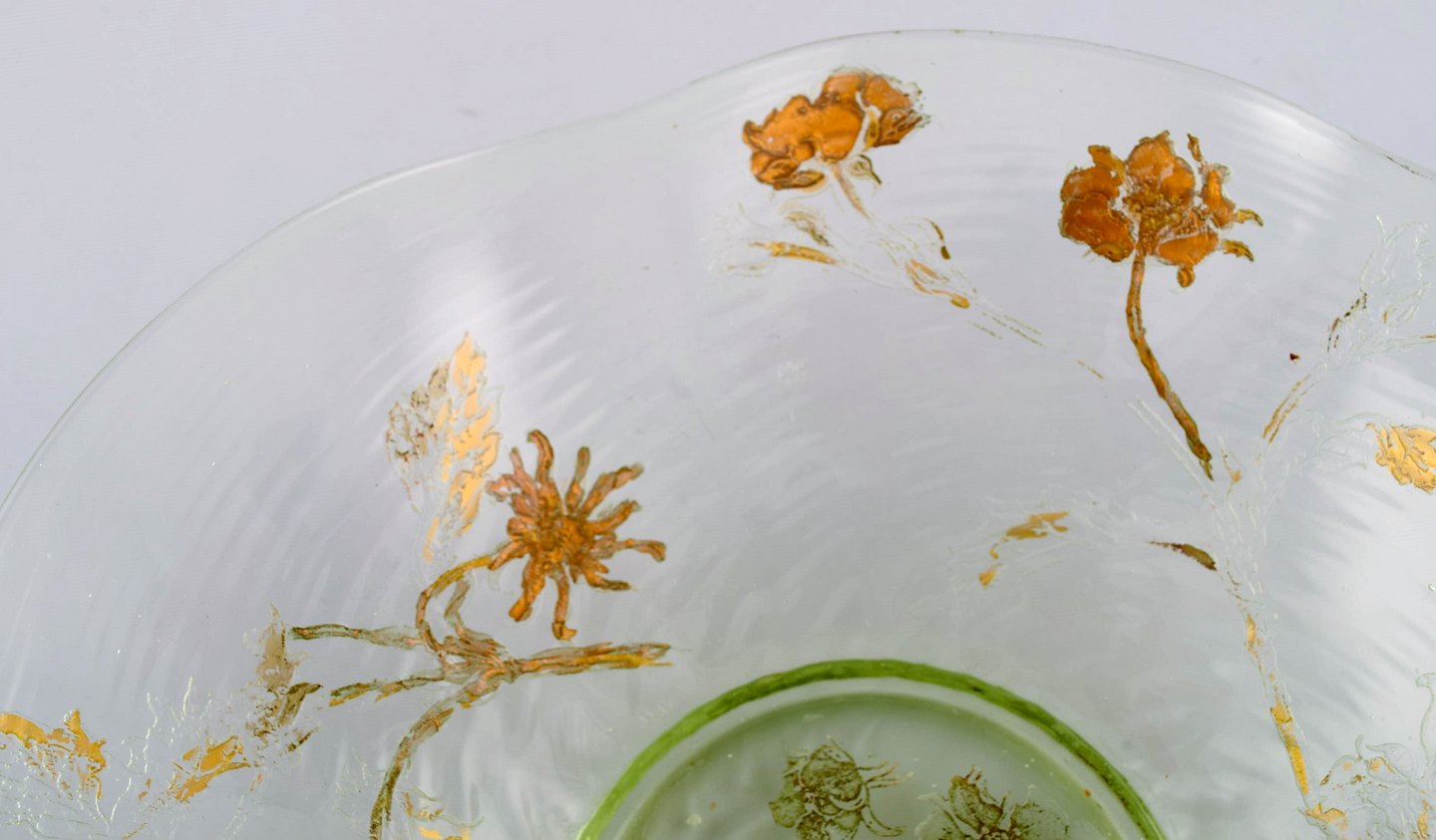Emile Gallé, Frankrig. Antik skål i mundblæst kunstglas med håndmalede blomsterdekorationer i guld. 1870/80'erne.