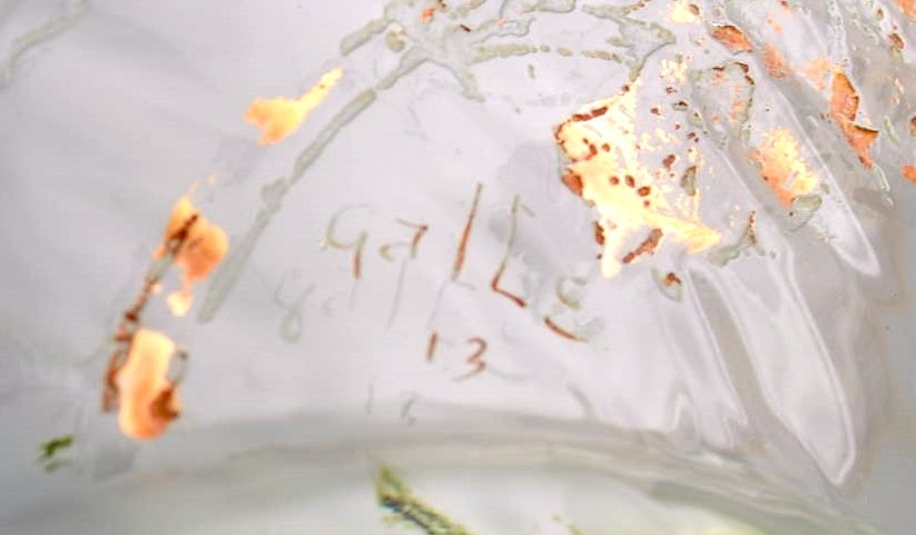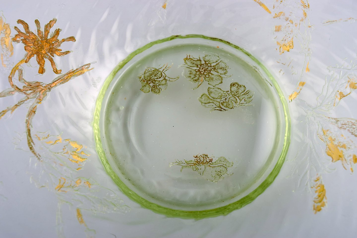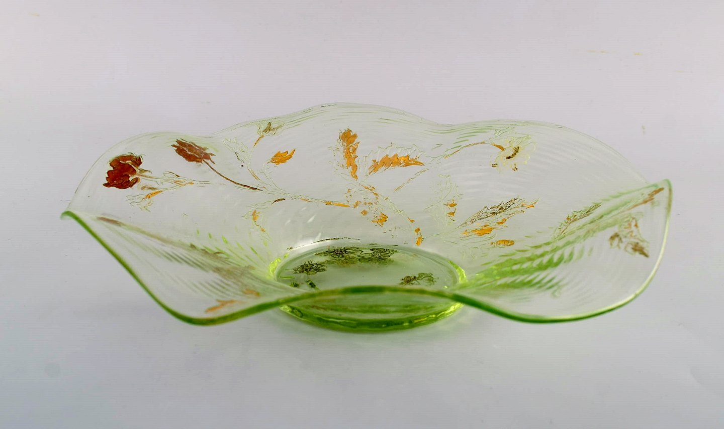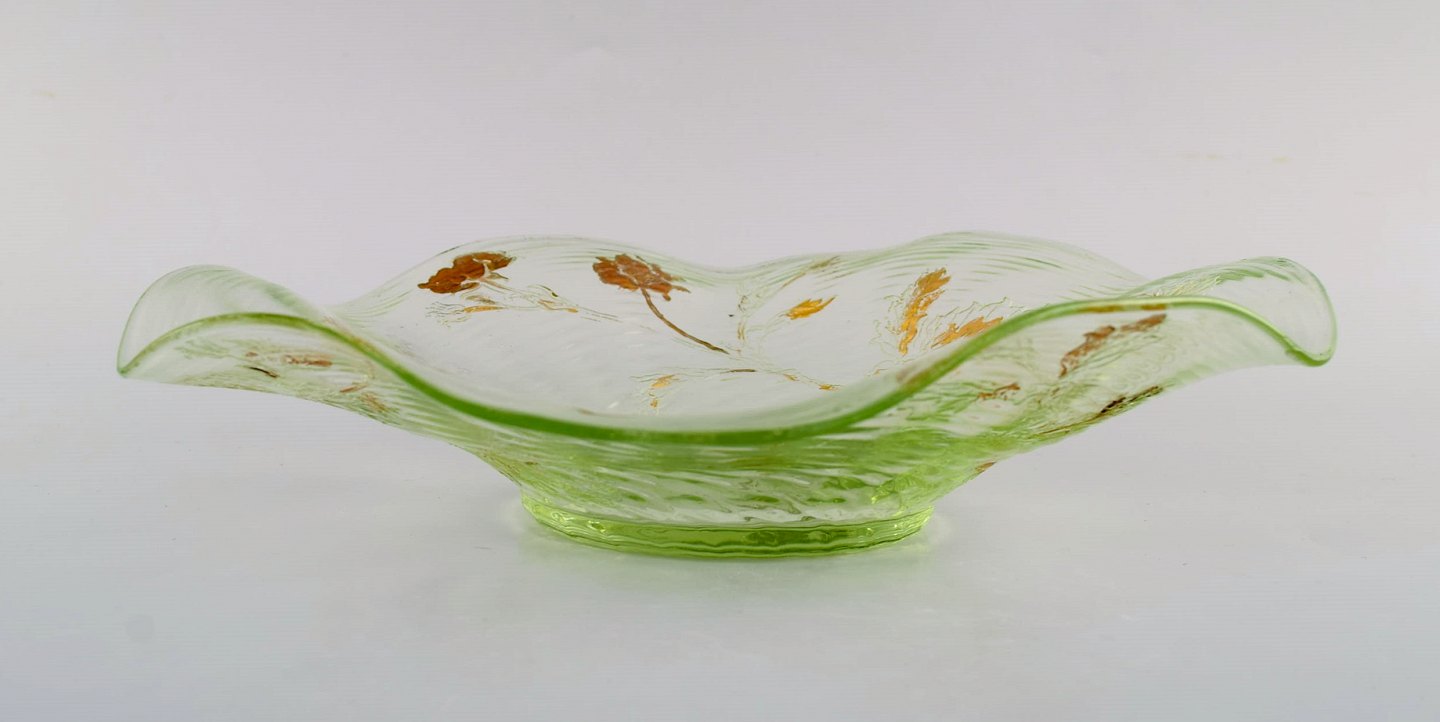 Emile Gallé, Frankrig. Antik skål i mundblæst kunstglas med håndmalede blomsterdekorationer i guld. 1870/80'erne.