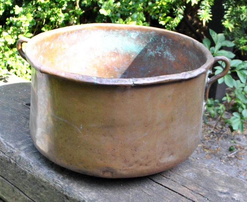 Stort kogekar i kobber, 19. årh. Danmark. Med to hanke. Højde.: 21 cm. Dia.: 37 cm.