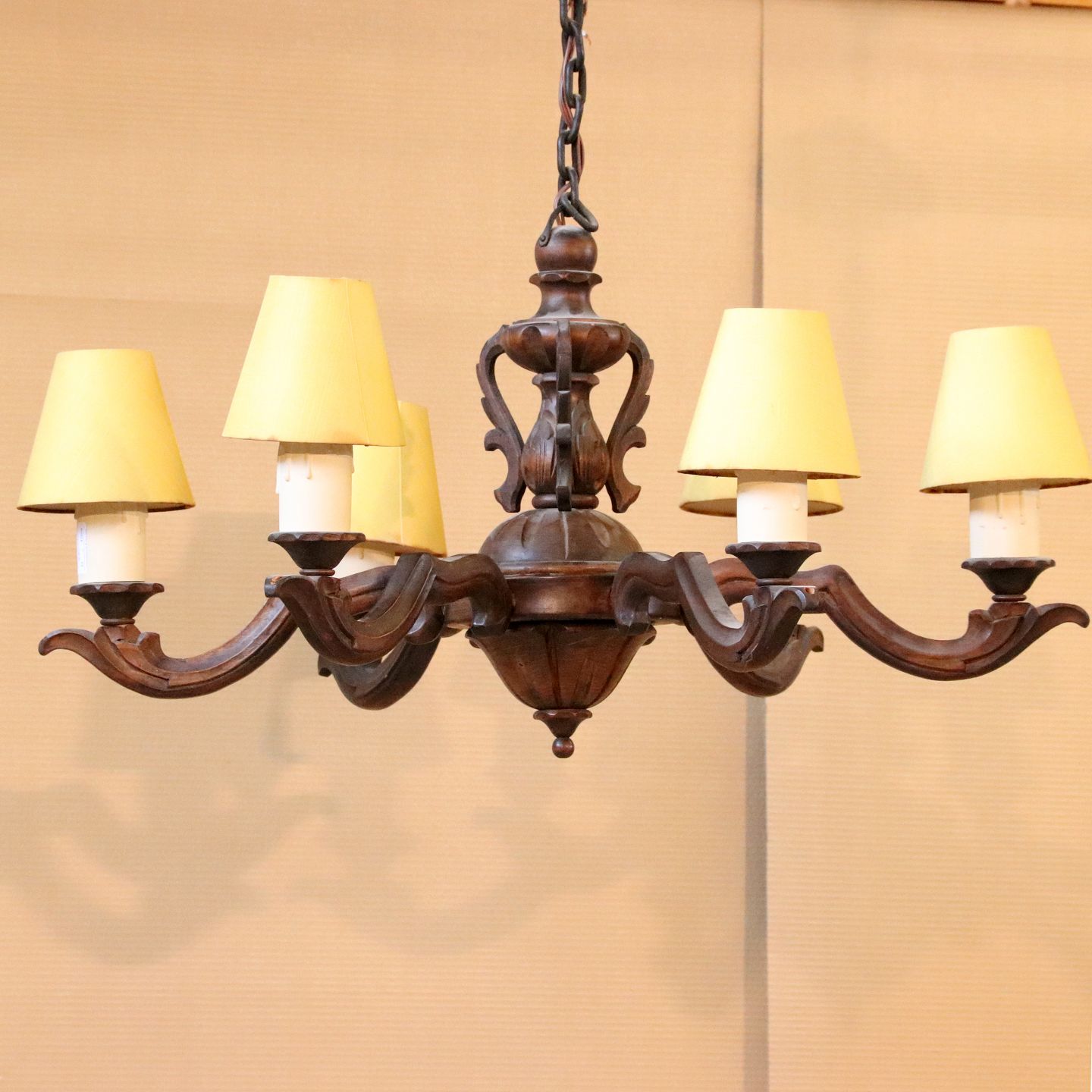 6-armet trælysekrone i bejdset bøgetræ, 80 cm i diameter, ca. 1940
