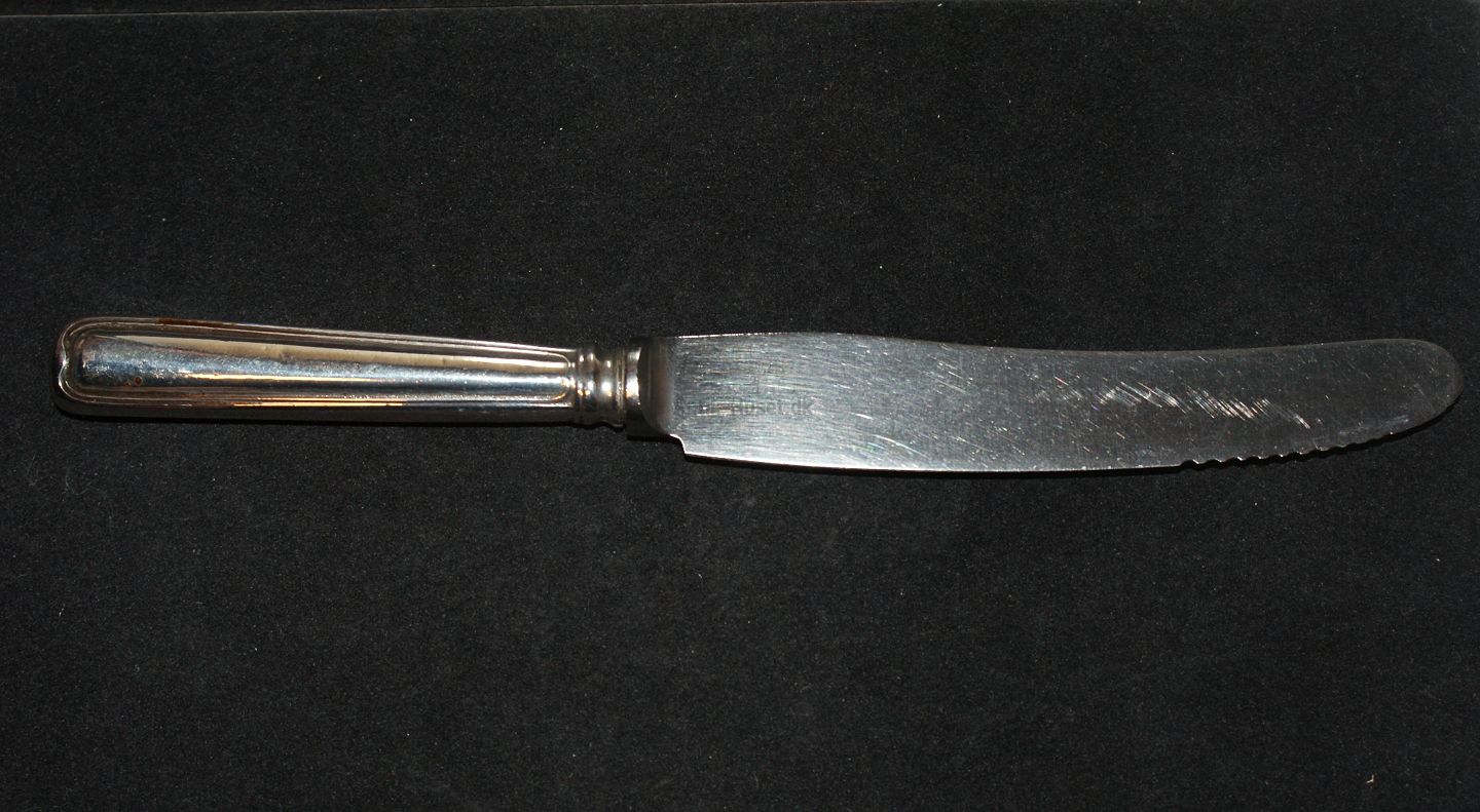 Middagskniv m/Savskær Gammel Riflet Sølv